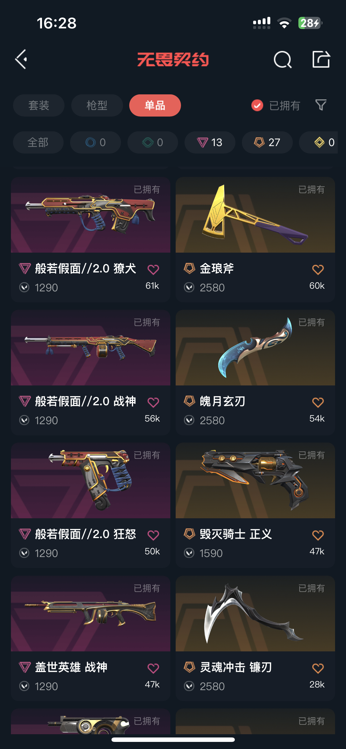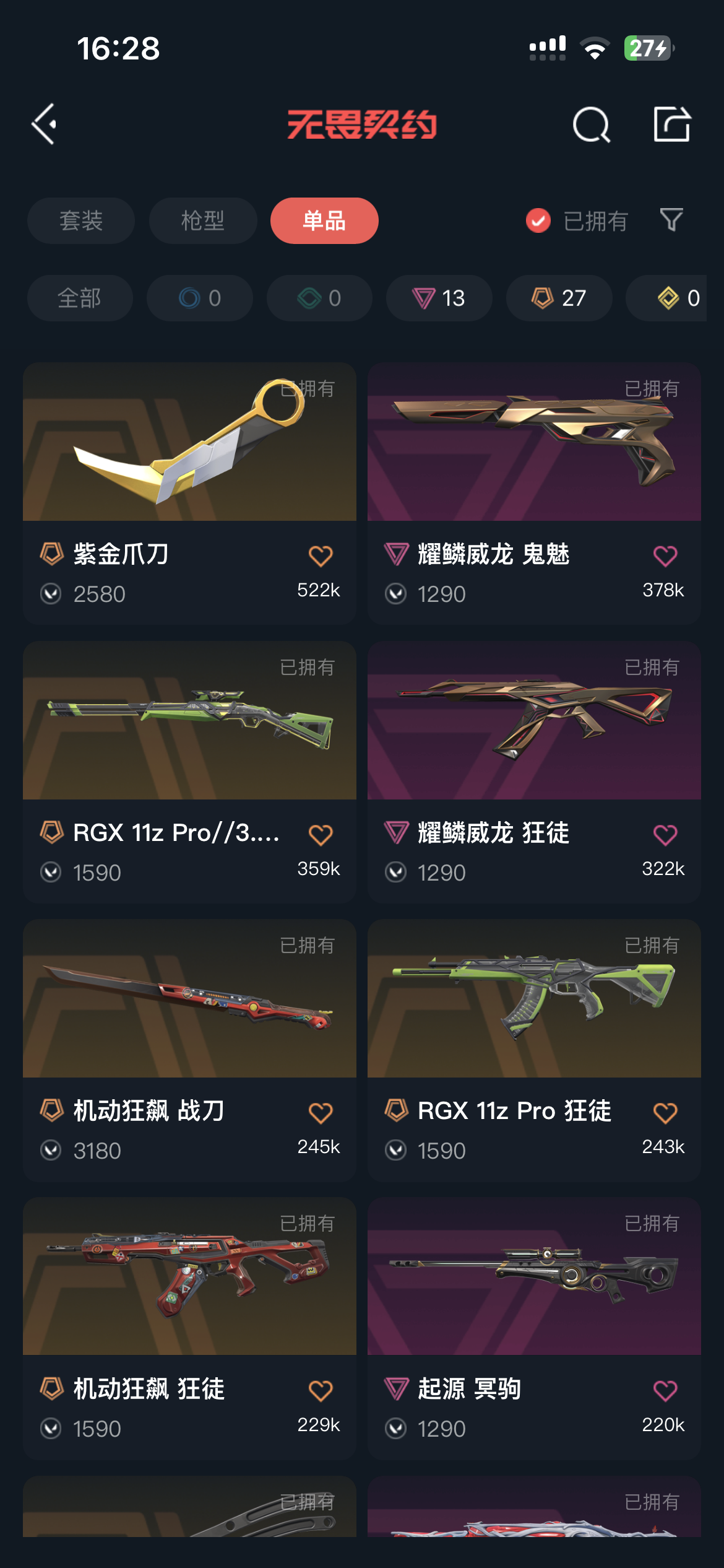 7w库存/显卡套/威龙套/般若2.0套/机动狂飙套/盖亚狂徒/混沌狂徒/奇点正义/剥皮/紫金爪刀/