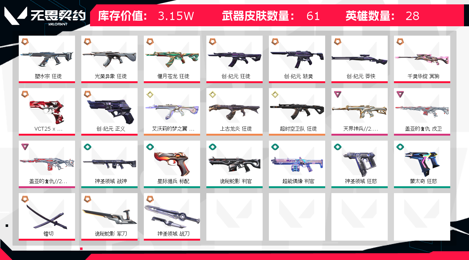 • 皮肤资产价值: 31490