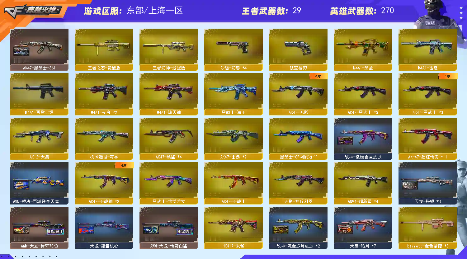• 游戏区服:穿越火线 / 电信区 / 上海一区