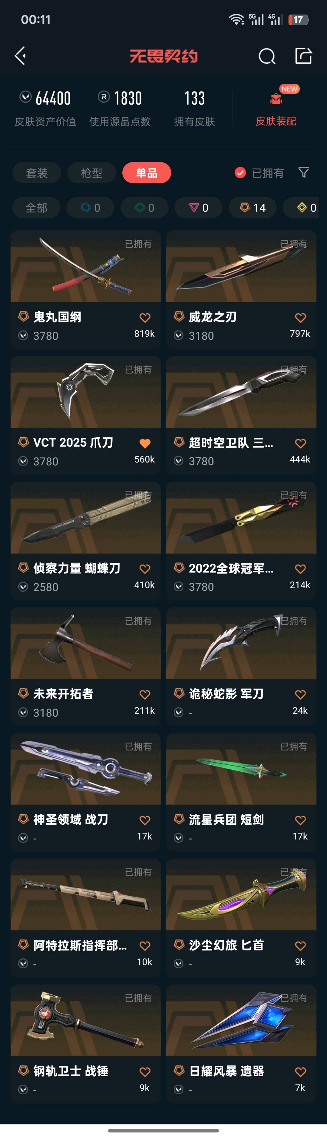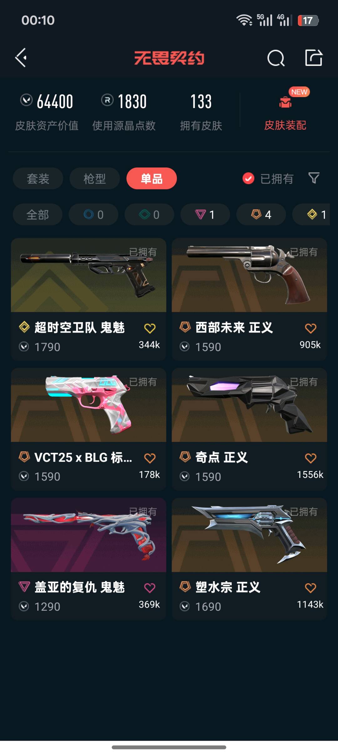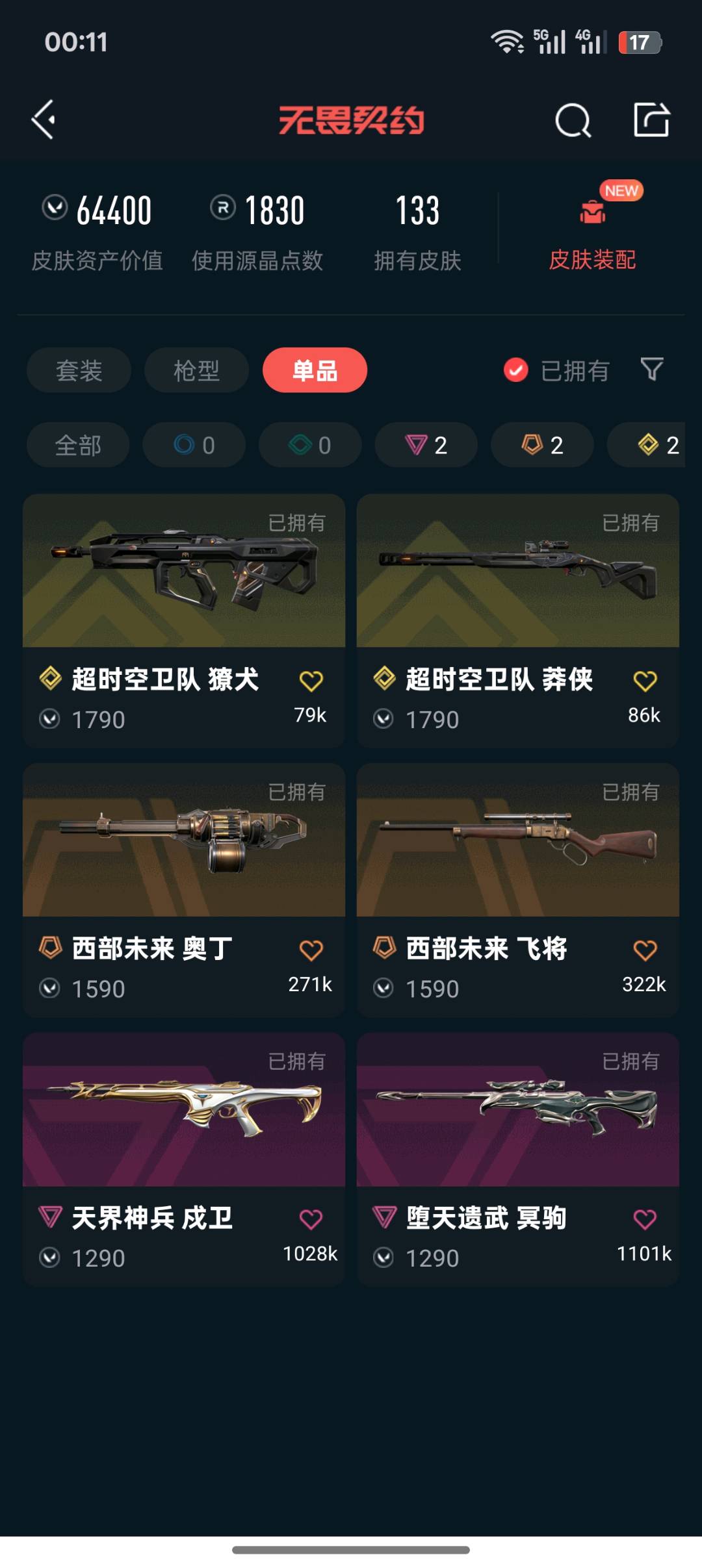 • 皮肤资产价值: 64400