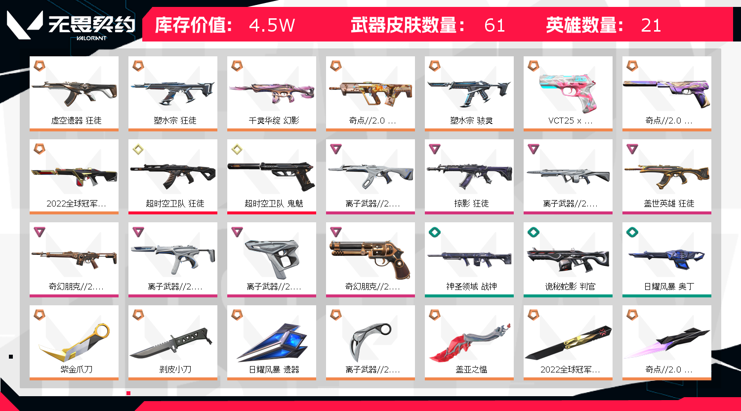 • 皮肤资产价值: 45000