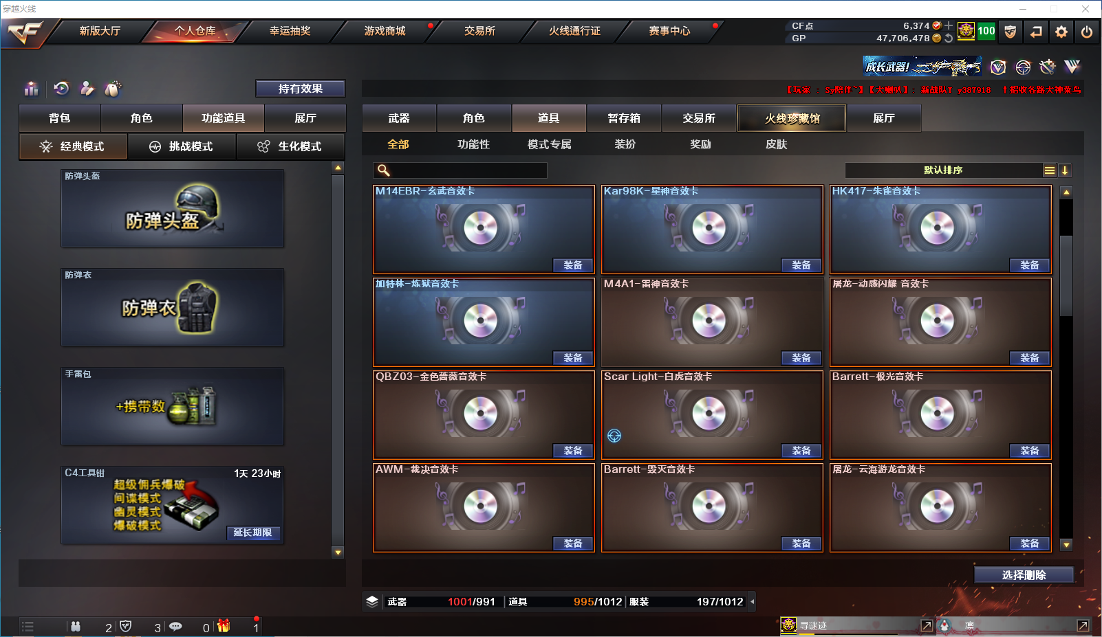 • 游戏区服:穿越火线 / 电信区 / 江苏一区
