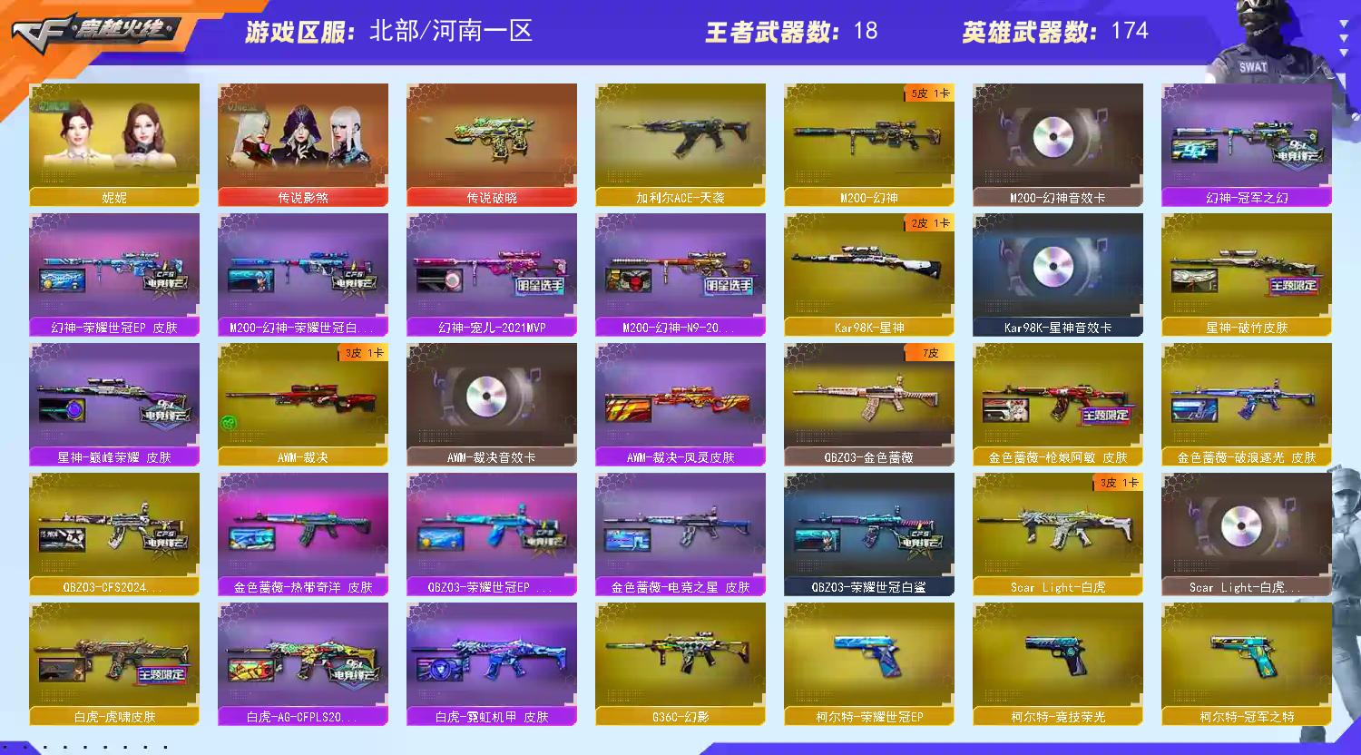 186v-传说影煞-传说破晓-幻神-幻神ep-幻神宠儿-幻神n9-幻神冠军之幻-幻神白鲨-幻神音效卡-加利尔ACE-荣耀世冠ep小刀-星神-星神巅峰荣耀-星神音效卡-星神破竹-m200竞技荣光套装-6盘龙-炼狱-朱雀-白虎-幻影-雷暴-青龙-天罚-qbz金色蔷薇-白虎电玩蓝兔-毁灭-王者星霆-usp雷暴-cop雷霆-cop幻灵-柯尔特竞技荣光-usp神工天巧-cop云龙-冠军之特-cop白鲨-炽芒蝶刃-传情小小语音包-火线妹语音包-裁决音效卡-朱雀音效卡-毁灭音效卡-火麒麟音效卡-极光音效卡-黑骑士音效卡-火麒麟枪娘-白虎虎啸-qbzcfs2024-雷神巅峰荣耀-炽芒蝶刃破浪逐光-雷神LGD-冠军之武-雷神十周年-毁灭AG-qbz白鲨-战神关羽-战神张飞-战神赵云-雷神动感闪耀-荣耀之锋-qbz枪娘-冠军之啸-qbz荣耀世冠ep-妮妮-柯尔特荣耀世冠ep-烟雾弹荣耀世冠ep;USP-雷暴,柯尔特-冠军之特,炽芒蝶刃,传说影煞,电竞教官-云悠悠,晴雅,王者沙漠玫瑰,