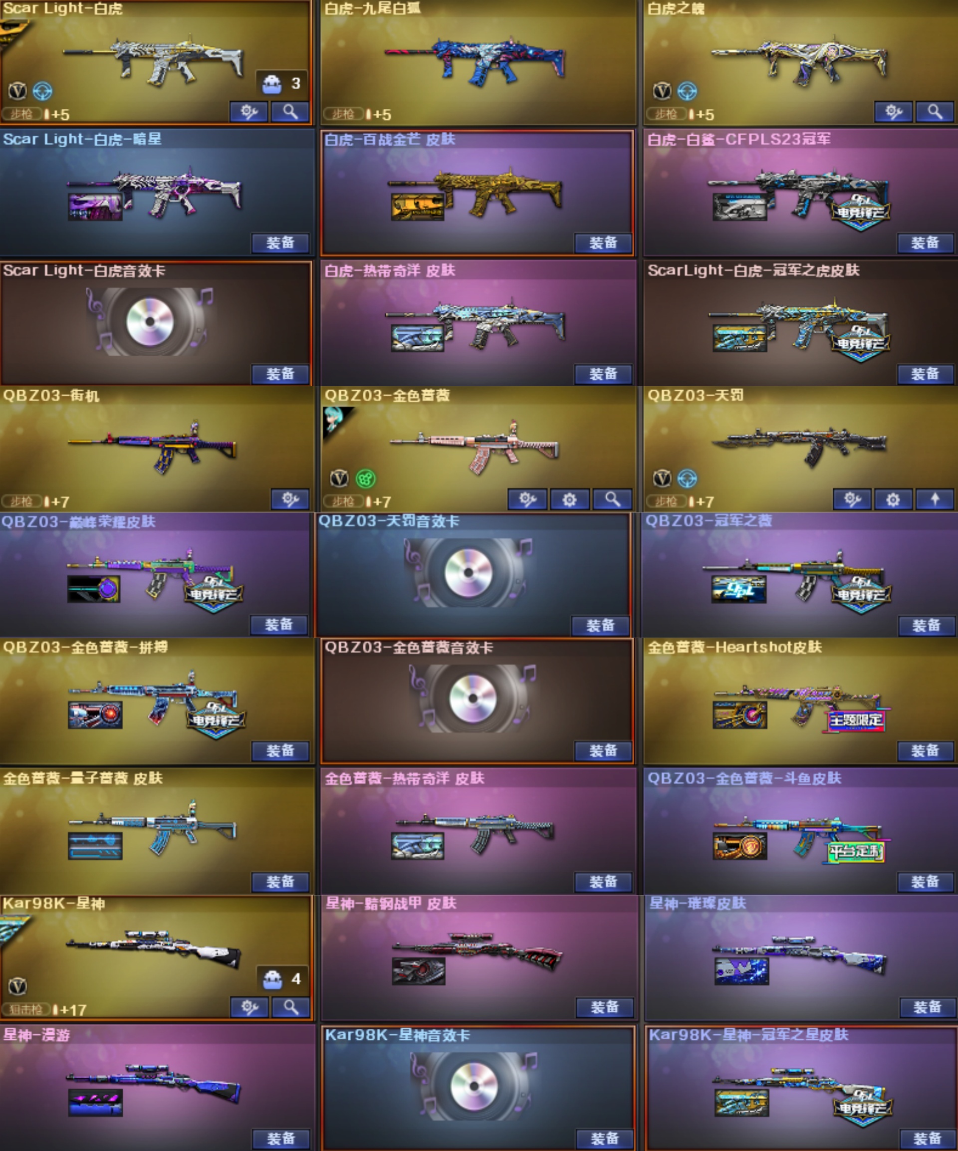 星骇幽瞳灵眸圣谕幻影天戎银翼玄豹♥幻神音效卡星火欧欧14皮♥裁决音效卡流光4皮♥白虎5皮QBZ10皮
