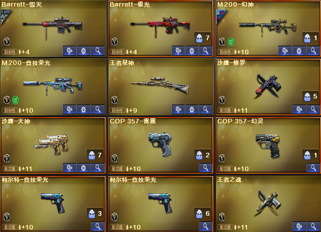M200-幻神 M200-竞技荣光 王者星神 冠军柯尔特 冠军之刃 荣光柯尔特X2 COP雷霆 COP幻灵 荣光套X8 幻灵套X2 白虎 金色蔷薇 皮肤:幻神巅峰荣耀 幻神世冠白鲨 QBZ世冠白鲨 白虎粉兔 雷神荣耀之魄 雷神战神赵云 火麒麟冠军之心 屠龙世冠AG 擎天冠军之击 麒麟刺世冠白鲨 人物:王者潘多拉【四防】 王者春【四防】 王者沙漠玫瑰【四防】 电竞教官云悠悠【四防】 关小羽【三防】葵 灵动武士 道具:QBZ音效卡 白虎音效卡 火麒麟音效卡 黑骑士音效卡 EP炫彩背包 BS炫彩背包 击杀图标X8 玩偶X13;柯尔特-冠军之特,Knife-冠军之刃,电竞教官-云悠悠,王者沙漠玫瑰,QBZ03-金色蔷薇,M200-幻神,Scar Light-白虎,