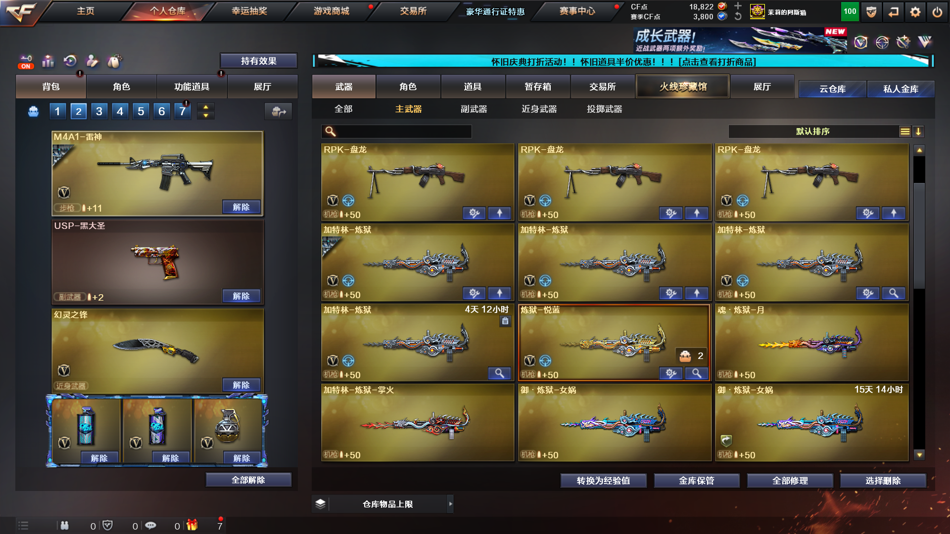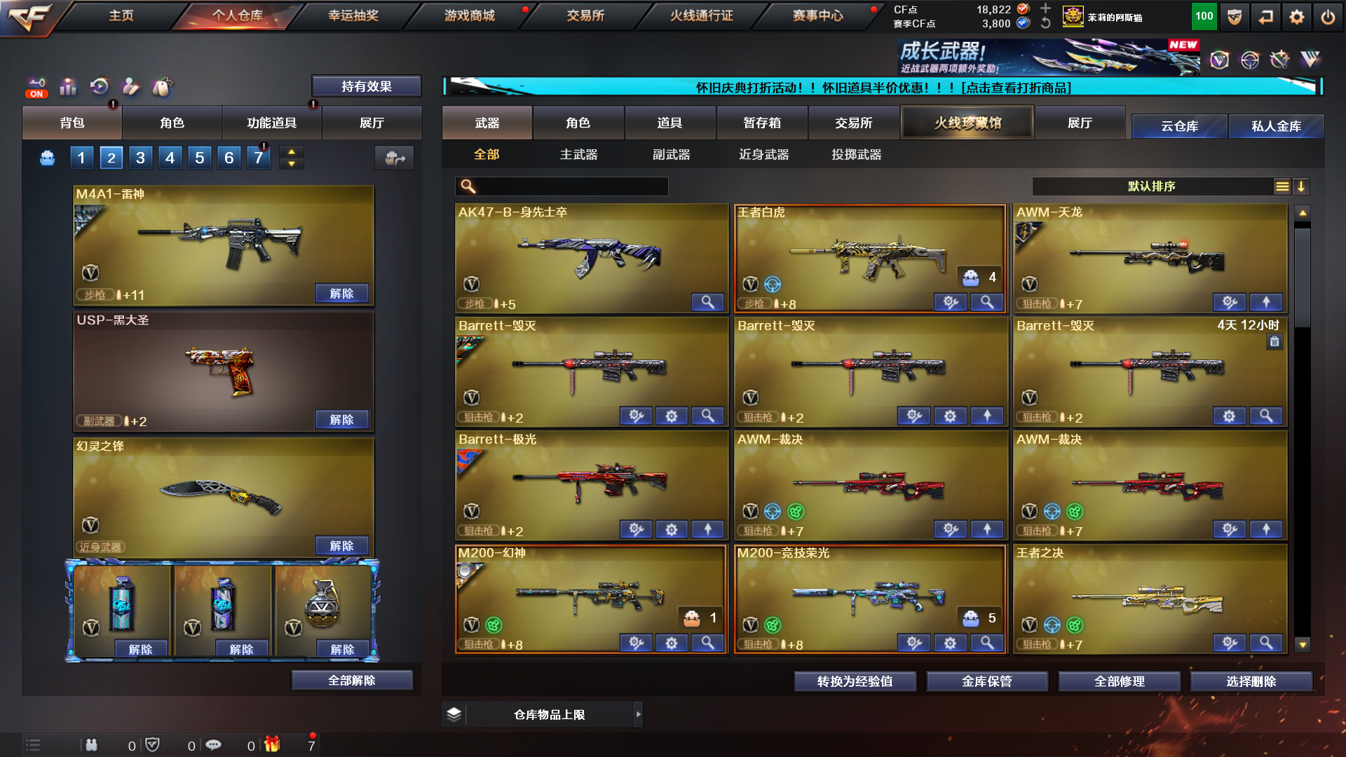 生化爆破号 全装;传说女帝,电竞教官-云悠悠,RPK-盘龙,QBZ03-金色蔷薇,M200-幻神,