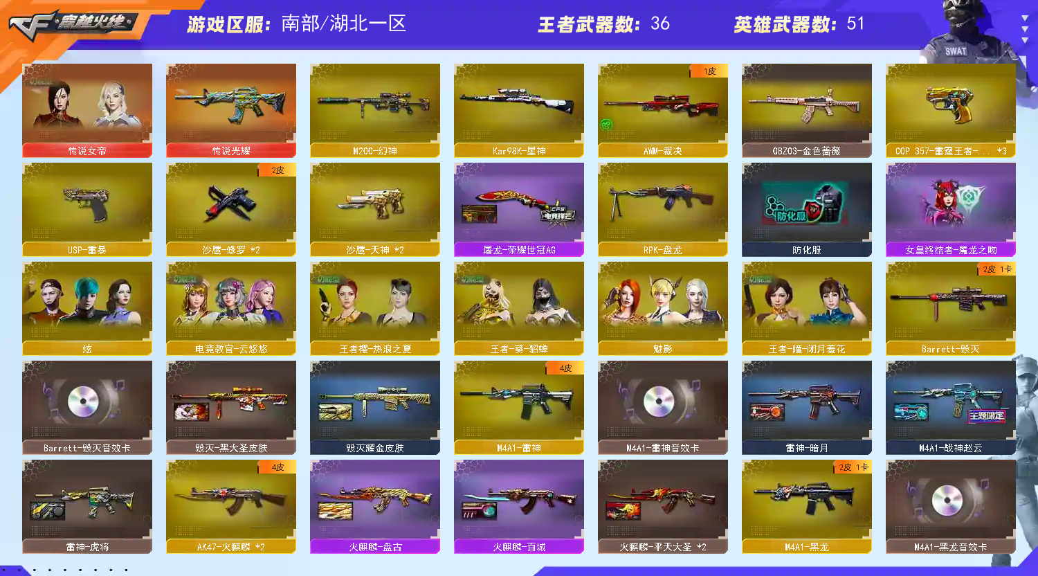 • 游戏区服:穿越火线 / 电信区 / 湖北一区