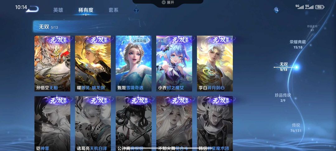 v10、12典藏520皮、马超无双飞将、韩信典藏、马可深海之熄、瑶珍品传说大耳狗之梦、青丘·九尾、枫霜尽、绯月行、前尘镜、至尊宝、天魔缭乱
