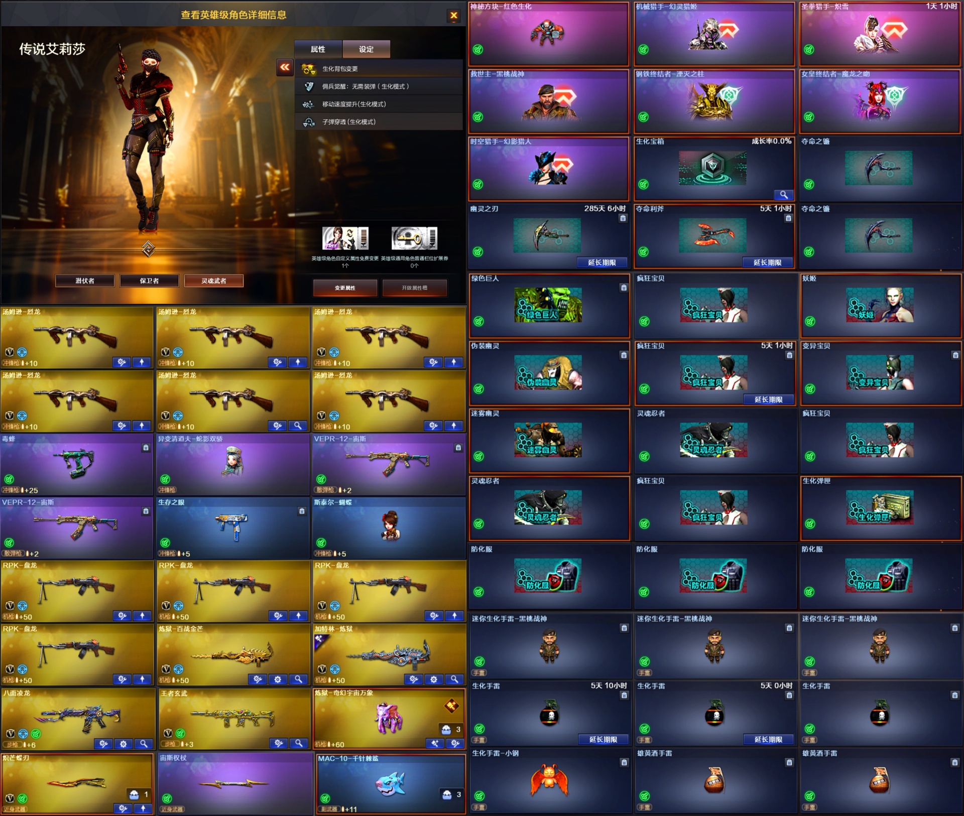 单ID(蕽)幽瞳圣谕幻影6烈泡泡象蝴蝶刀满级凌龙♥幻神音效卡2皮♥裁决音效卡3皮巅峰荣耀♥6副手