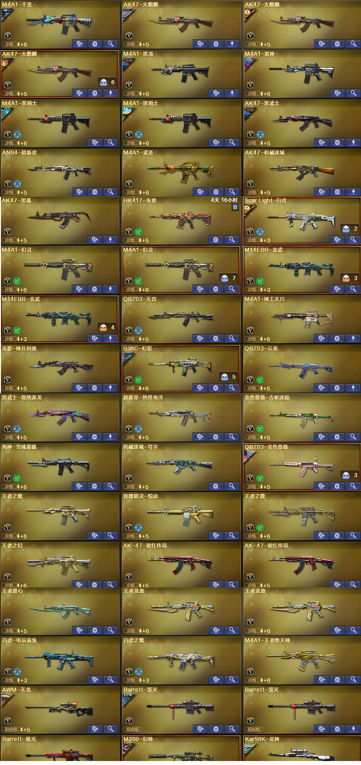 首页 > 租号大厅 > 穿越火线 > 网通区/河南一区 > 四防隼+6烈炎龙6盘炼狱✅带皮炽芒蝶刃✅双幻神9件套✅带皮星神+带皮幻影+2冠军之特+带皮白虎✅