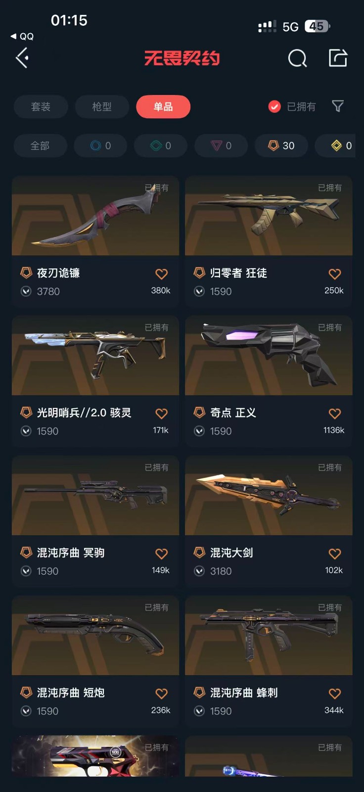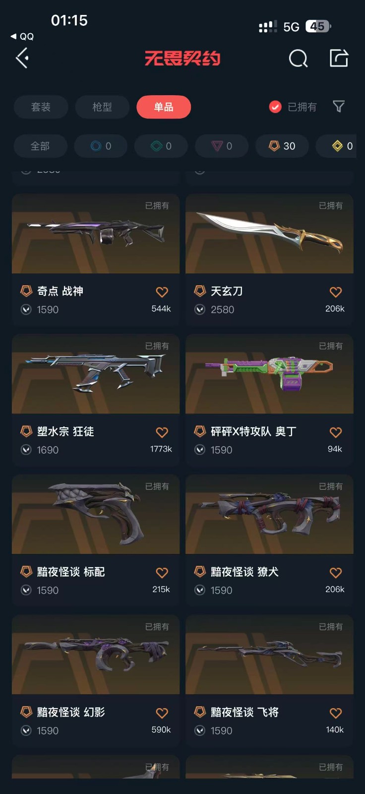 8万库存♥掠影套♥英雄之选套♥剥皮小刀♥混沌序曲套♥黯夜怪谈套♥24冠军套♥天界套♥紫金ak