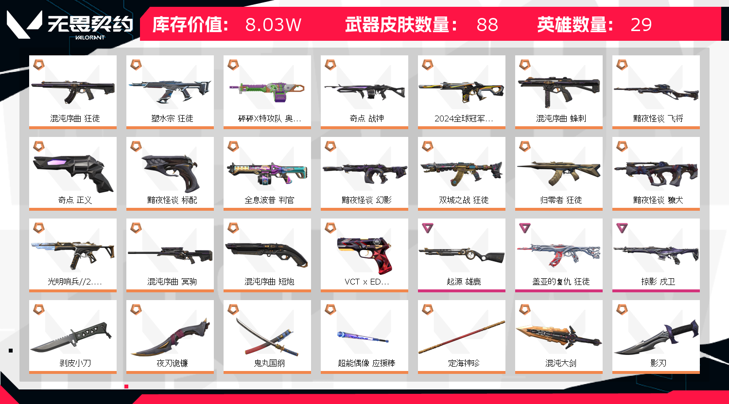• 皮肤资产价值: 80260