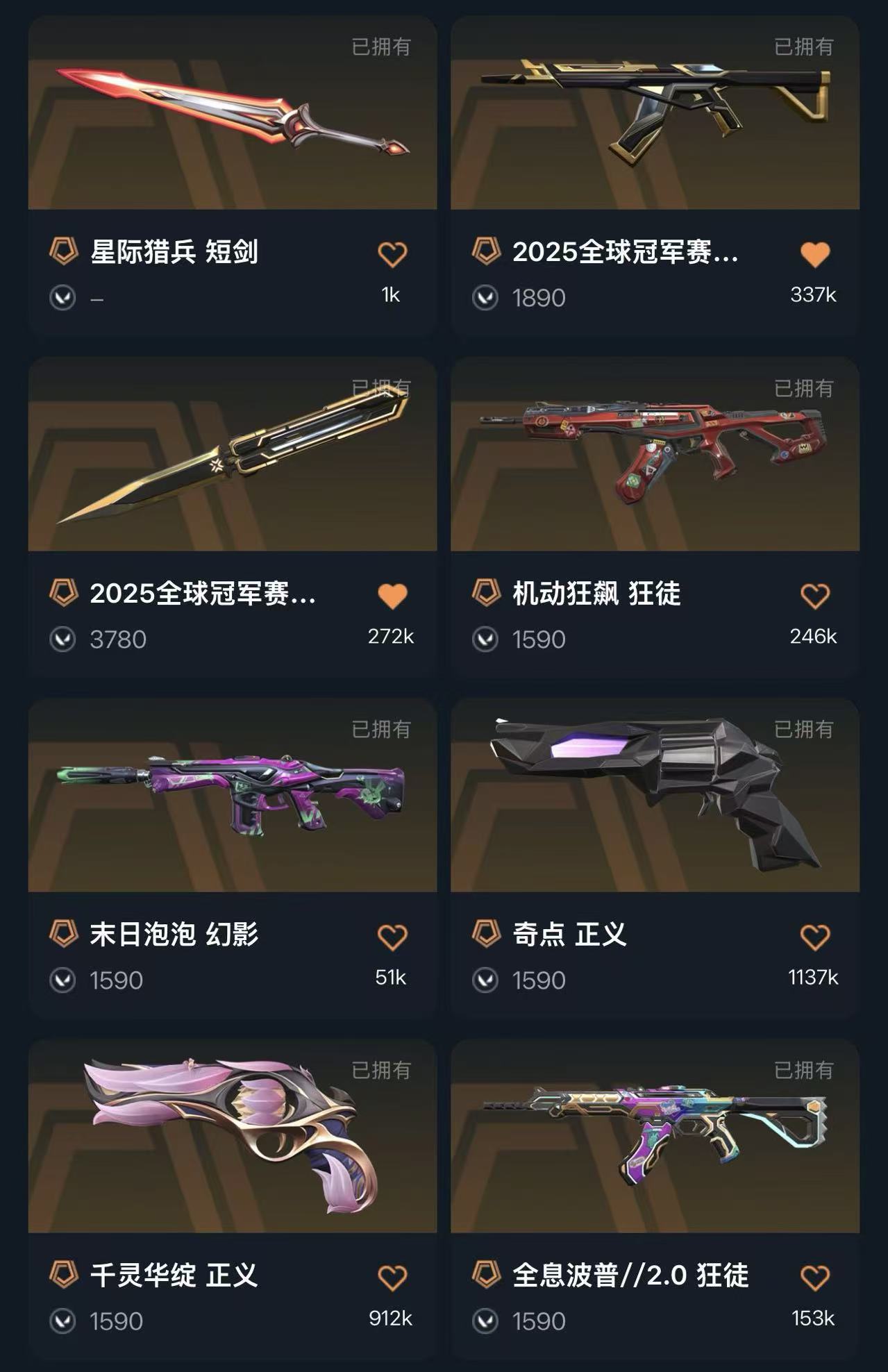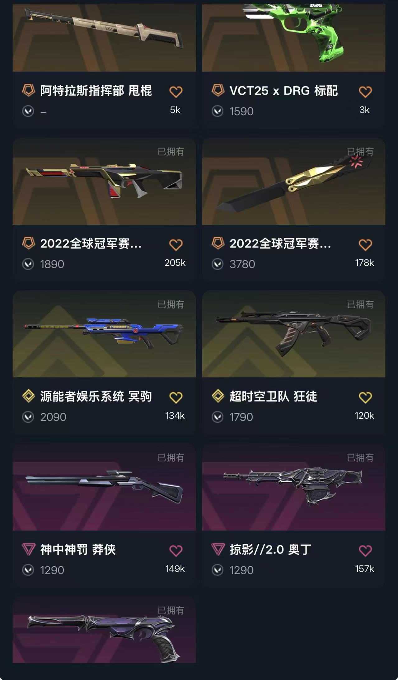 冻结秒解✨25冠军套✨22冠军套✨末日泡泡幻影✨超时空卫队狂徒✨全息波普2.0狂徒✨电玩冥狙