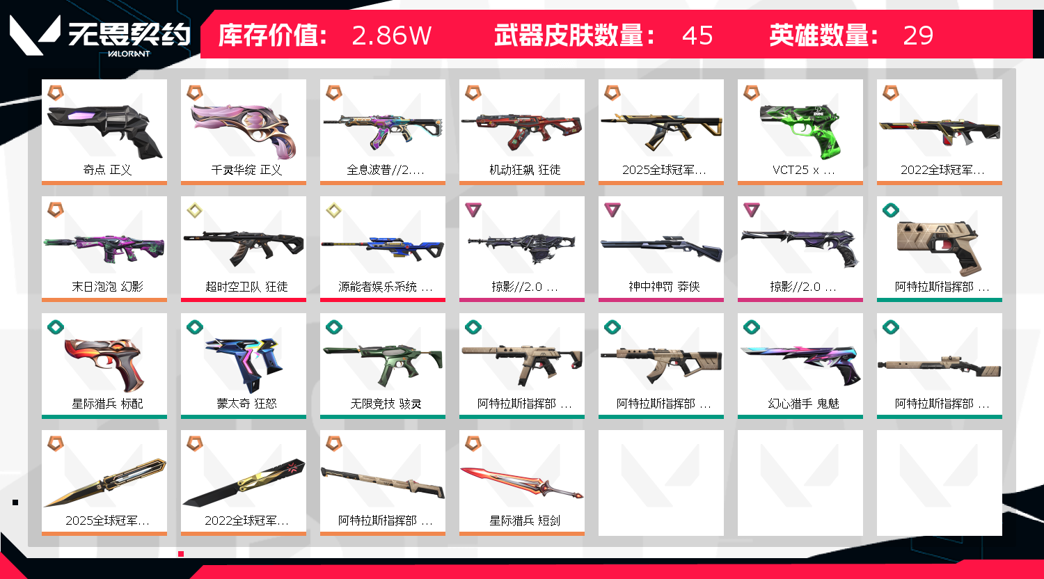 • 皮肤资产价值: 28630