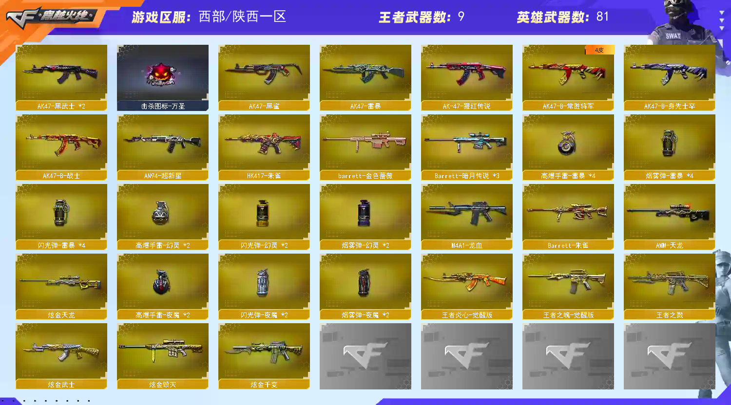 • 游戏区服:穿越火线 / 电信区 / 陕西一区