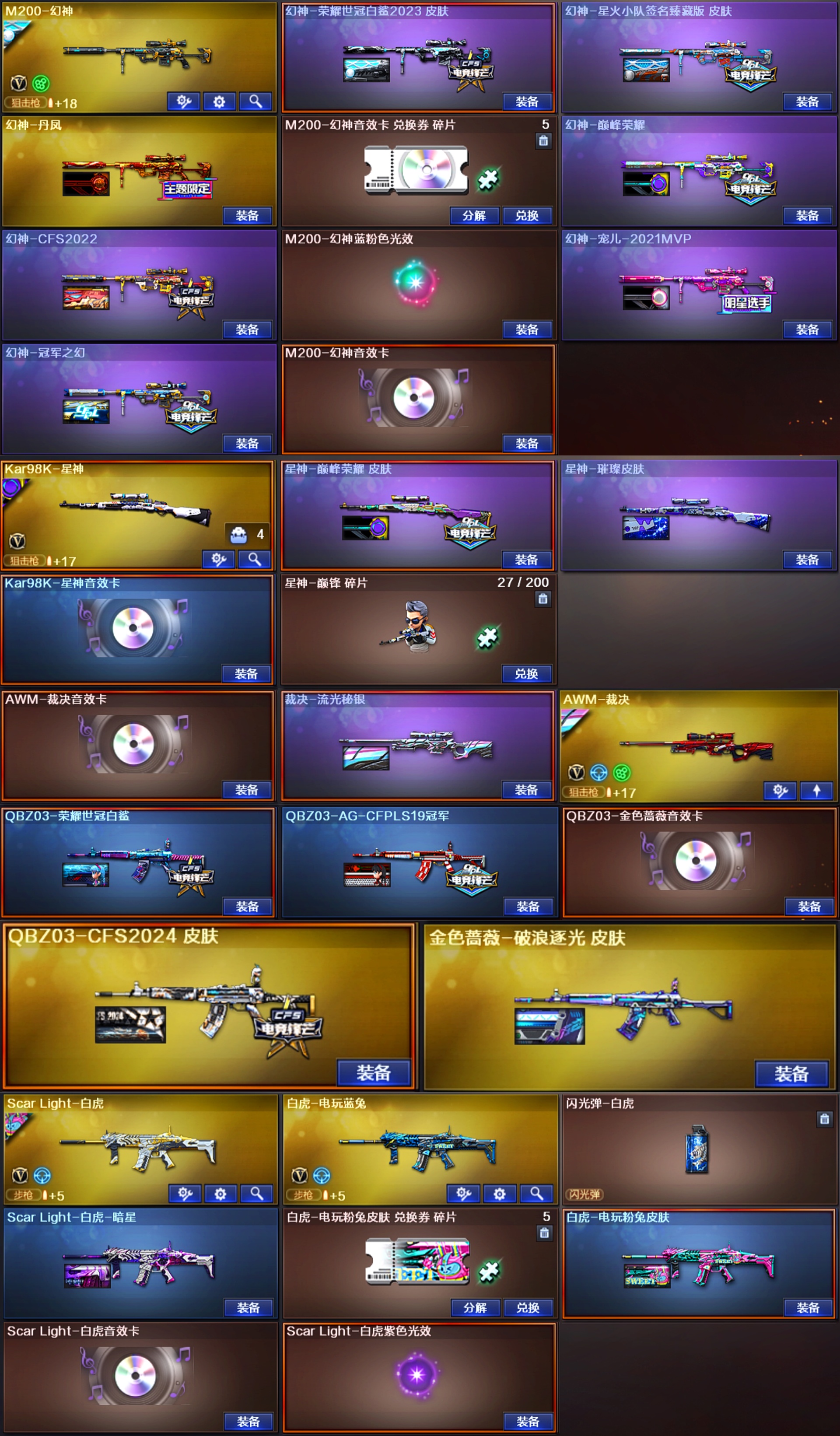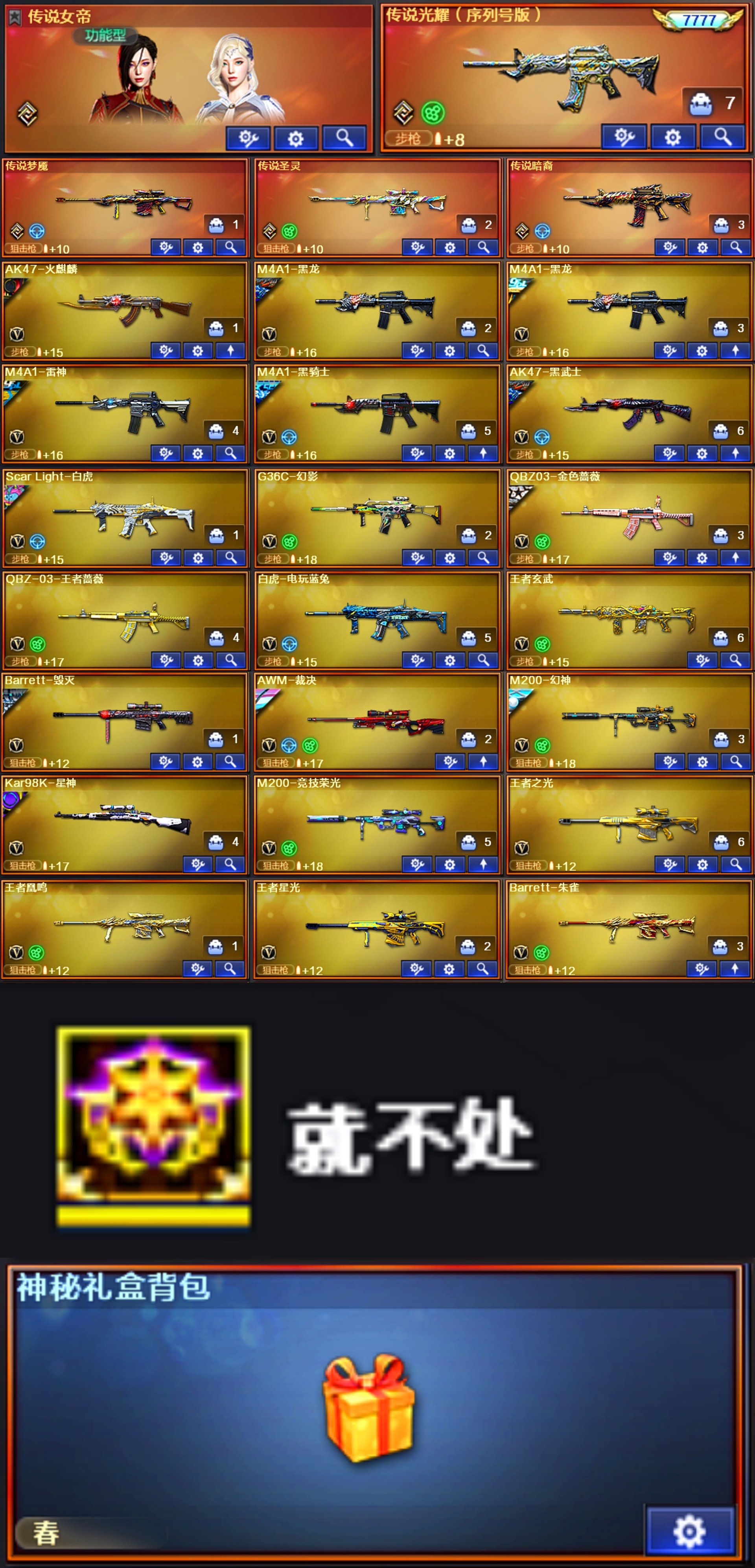 传说女帝幻影光耀序列7777♥幻神音效卡7皮宠儿白鲨星火♥6柯尔特♥裁决音效卡流光蔷薇4皮白虎2皮