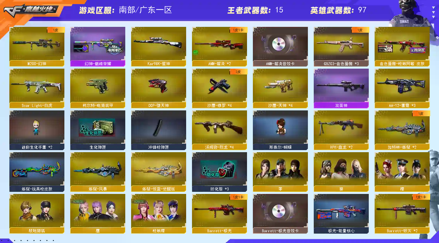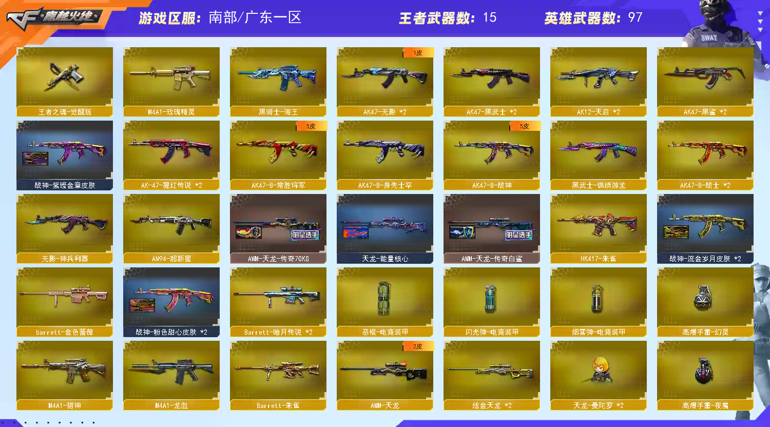 • 游戏区服:穿越火线 / 电信区 / 广东一区