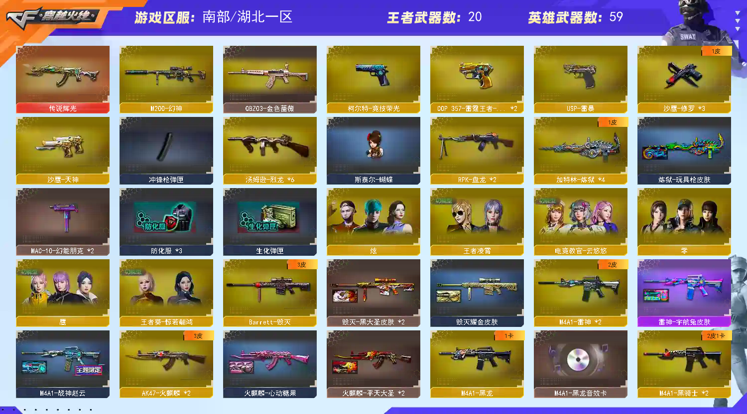 首页 > 租号大厅 > 穿越火线 > 电信区/湖北一区 > 传说辉光+幻神USP雷暴+王者星神+鹰4防丨6烈蝴蝶王者葵-惊若翩鸿4防、M200竞技荣光炫金