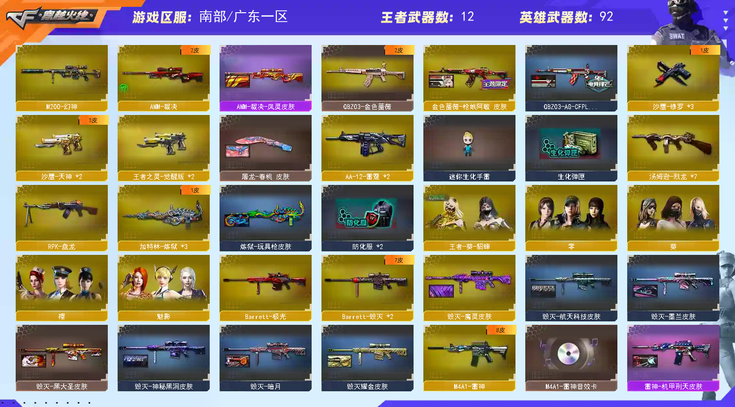 幻神、QBZ冠军AG皮枪娘、王者貂蝉、雷神星空音效、裁决火麒麟、毁灭耀金、6烈死亡之★★★其他看图★★★;RPK-盘龙,QBZ03-金色蔷薇,M200-幻神,