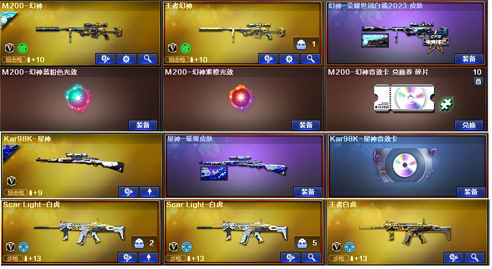 北部-215V【5幻兽+传说暗裔序列号9991+神秘礼盒+幻神荣耀世冠白鲨2023王者幻神王者风神星神璀璨三件套裁决流光秘银三皮三件套双COP幻灵白鲨柯尔特】】 6盘龙6烈龙6修罗+2雷霆手雷套+2堕天神手雷套+几十个炫金王者;柯尔特-荣耀世冠白鲨2023,RPK-盘龙,QBZ03-金色蔷薇,G36C-幻影,M200-幻神,Scar Light-白虎,Kar98K-星神,