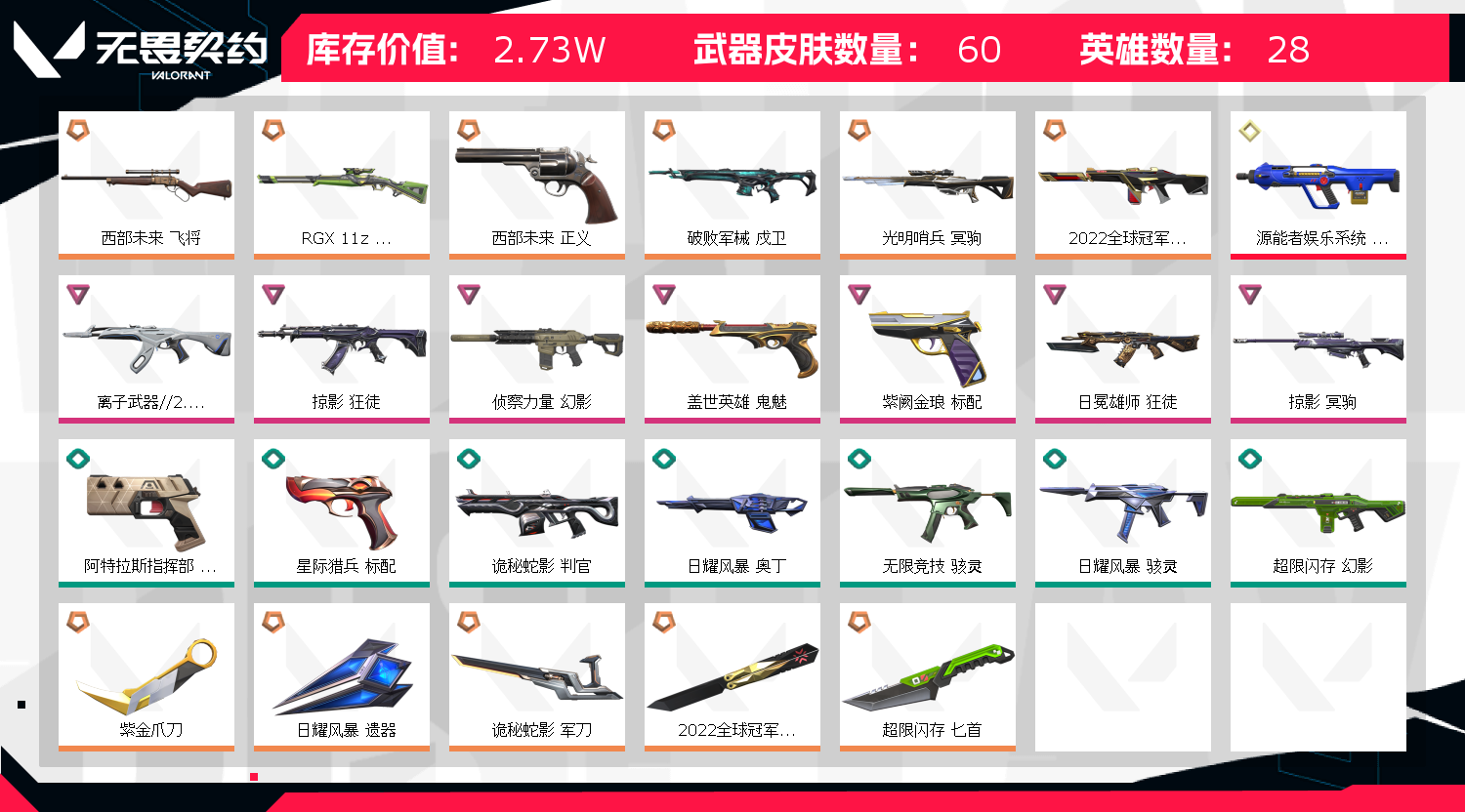• 皮肤资产价值: 27320