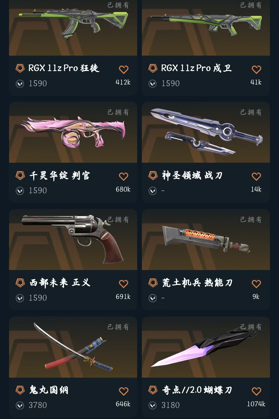 首页 > 租号大厅 > 无畏契约-wegame > wegame/wegame > 冻结秒解✨6.2w库存✨天界神兵套✨塑水宗套✨鬼丸国纲✨显卡爪刀✨上古炎龙狂徒✨奇点蝴蝶刀