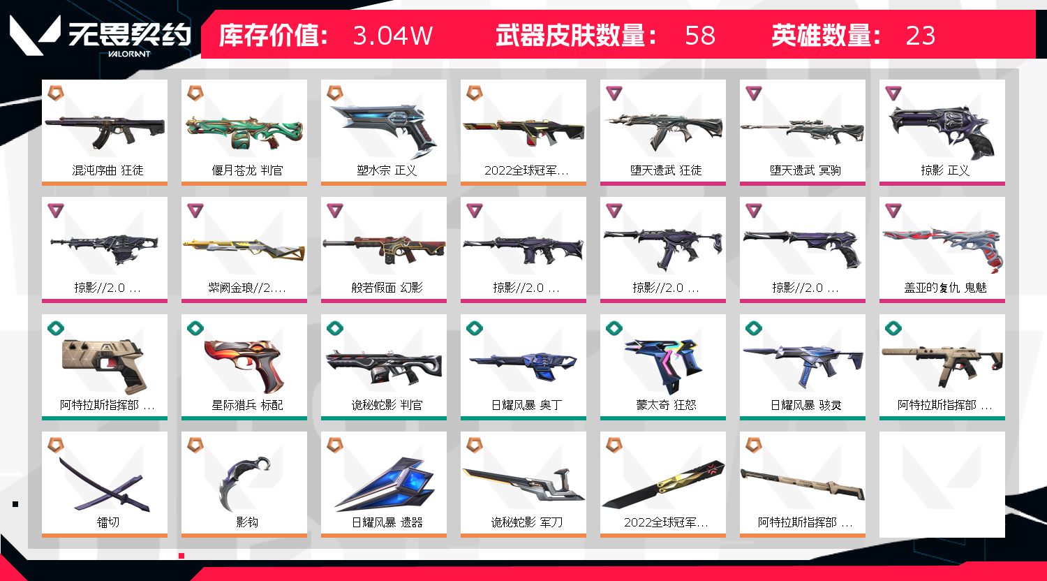 首页 > 租号大厅 > 无畏契约-wegame > wegame/wegame > 可排位/秒解/2022冠军 掠影2 套装/盖亚的复仇鬼魅5/偃月苍龙判官4/塑水宗正义4/假面幻影4