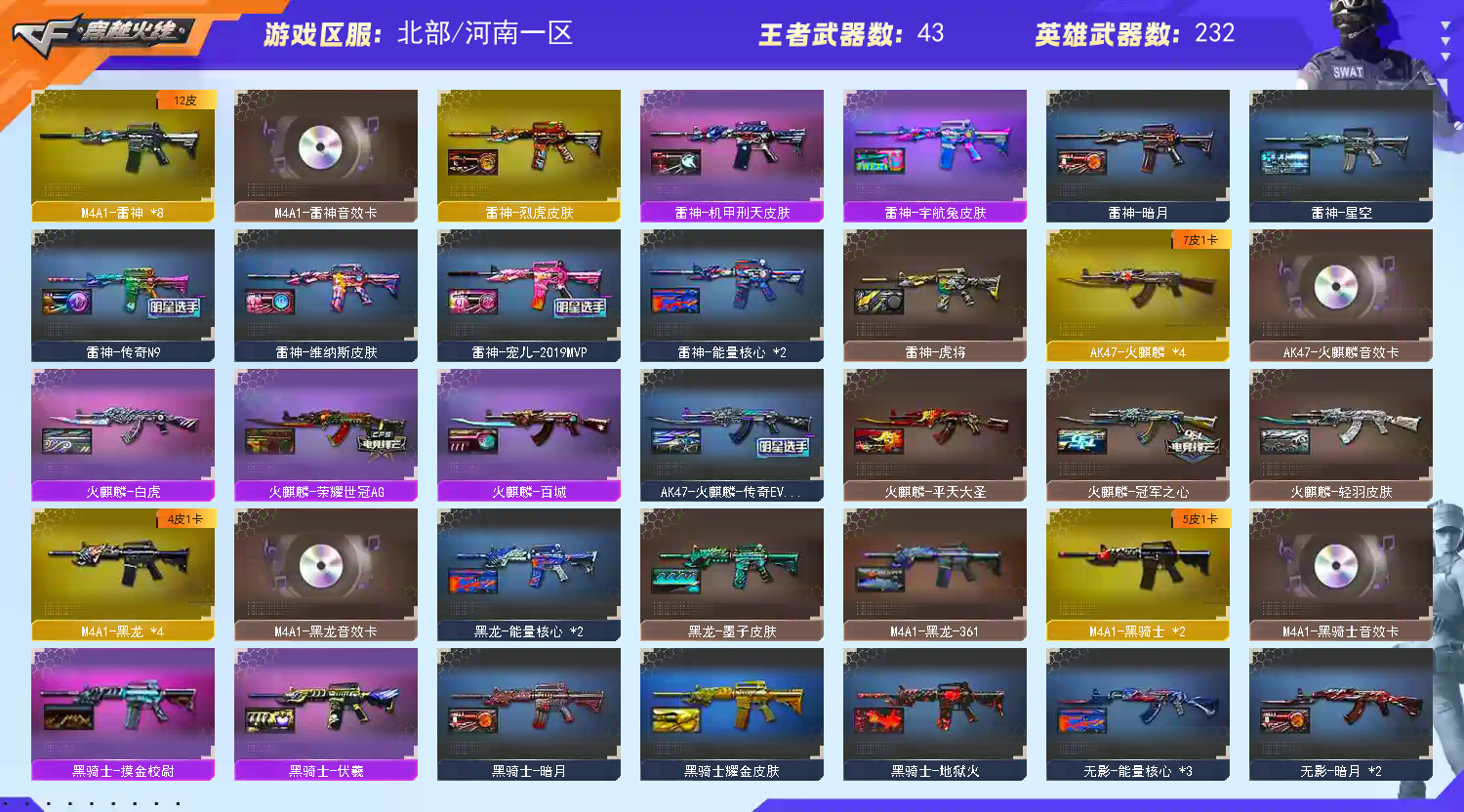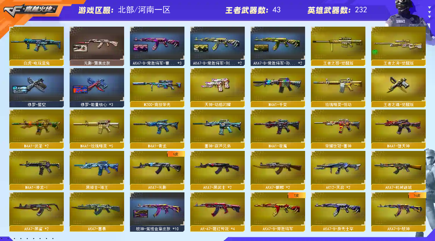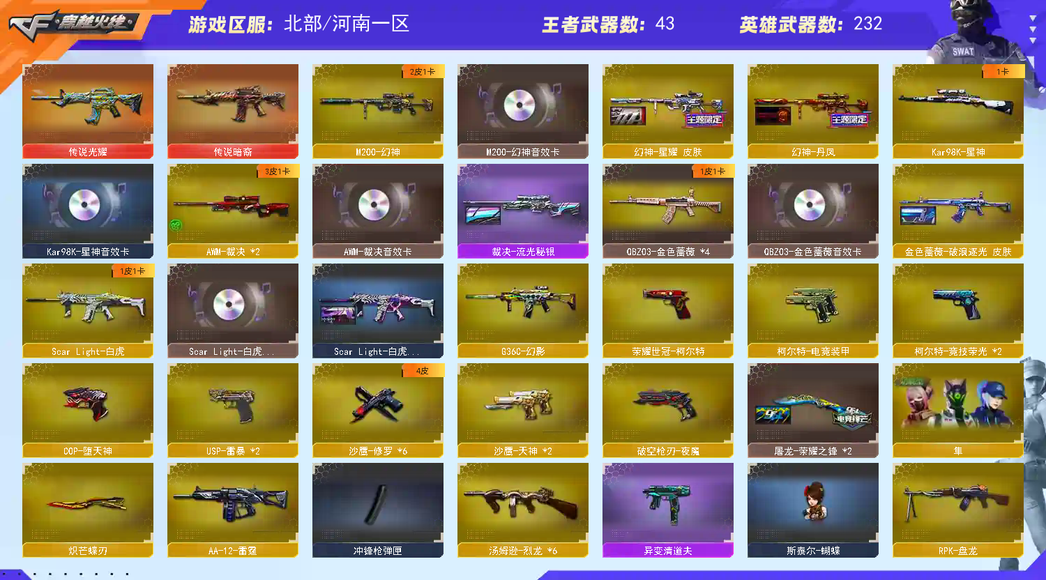 首页 > 租号大厅 > 穿越火线 > 网通区/河南一区 > 裁决幻神皮+卡G36幻影/星神白虎QBZ皮+卡❤7把手枪11音效蝴蝶刀6炼狱6烈龙