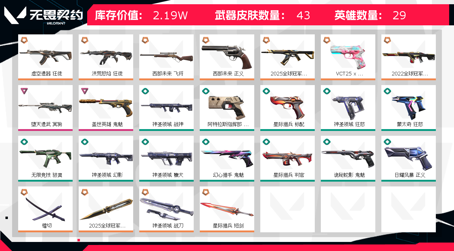 首页 > 租号大厅 > 无畏契约-wegame > wegame/wegame > 25冠军套/流脓ak/22冠军幻影/西部飞将正义/镭切/坠天遗武冥驹