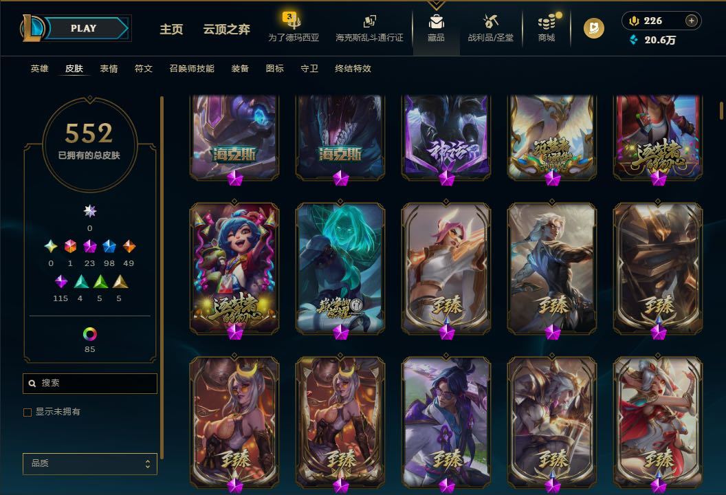 【裁决之地】1300皮肤169英雄1023皮肤+277炫彩、龙瞎、摄魂薇恩、恐惧新星、至臻菲奥娜、至臻凯特琳、至臻墨菲特、至臻金克丝、至臻烈娜塔、至臻希维尔、至