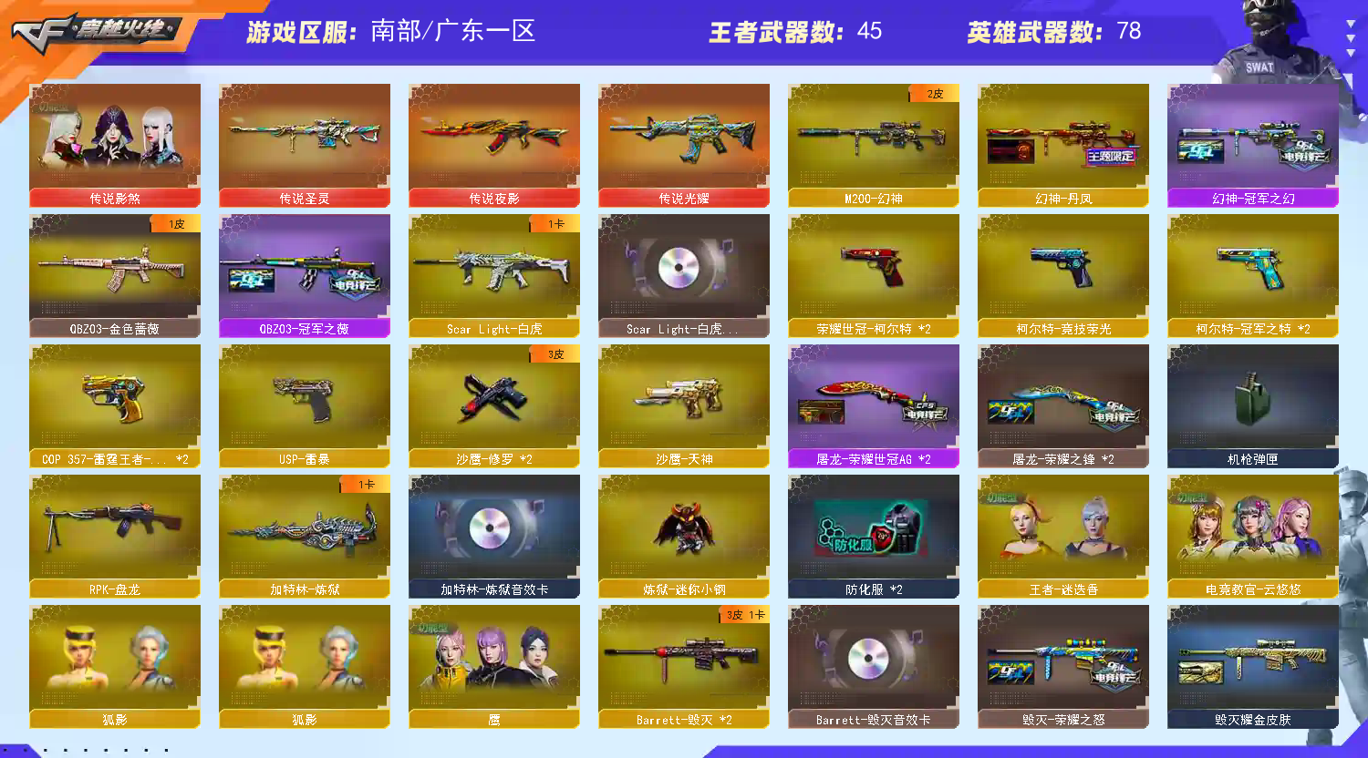 102v43王者可排位【竞技荣光套/传说光耀/传说夜影/传说圣灵/传说影煞/M200幻神+幻神丹凤+幻神冠军之幻+幻神蓝粉色光效/Knife-冠军之刃/炽芒蝶刃/M200竞技荣光+柯尔特竞技荣光+擎天竞技荣光/荣耀世冠火麒麟+荣耀世冠雷神+2把荣耀世冠柯尔特/Barrett-朱雀/HK417-朱雀/Scar Light-白虎/QBZ03-金色蔷薇/盘龙/炼狱/2修罗/USP-雷暴/COP357-雷霆王者/2把柯尔特冠军之特/1套幻灵雷/8套竞技荣光雷/6套雷霆王者雷/金刚伞/】【火麒麟音效卡/黑骑士音效卡/雷神音效卡/毁灭音效卡/白虎音效卡/加特林-炼狱音效卡/】【/QBZ03-冠军之薇/火麒麟-巅峰荣耀/擎天-冠军之击/黑龙-冠军之武/毁灭-荣耀之怒/屠龙-荣耀之锋/修罗-冠军之魂/雷神-荣耀之魄/毁灭-冠军之怒/毁灭-CFS2018/火麒麟-荣耀世冠AG/屠龙-荣耀世冠AG/雷神-荣耀世冠AG/黑骑士-白马银枪/雷神-脉冲核心/黑骑士-伏羲/修罗-星空/火麒麟-心动糖果/黑骑士耀金皮肤/麒麟刺-萌杀皮肤/黑骑士-战神马超/毁灭耀金皮肤/火麒麟-雷神/火麒麟-CFSTAR/火麒麟-平天大圣/天龙-CF STAR/修罗-CFSTAR/修罗耀金皮肤/AWM-天龙-传奇白鲨/雷神-虎将/】【四防】电竞教官-云悠悠/【四防】王者-迷迭香/【四防】灵狐者-职业经理/【四防】樱-青春偶像/鹰/狐影/云海玲珑/樱-战斗天使/职业选手/】【/王者之心-觉醒版/王者冰魄-觉醒版/王者之魄-觉醒版/王者之势-觉醒版/Barrett-雷霆王者/王者之光-觉醒版/王者之决-觉醒版/王者星霆-觉醒版/雷霆王者之锋-觉醒版/王者之刺-觉醒版/王者之锋-觉醒版/炼狱-迷你小钢/COP-白鲨/毁灭征服者-超越Max/激光毁灭者-超越3/激光毁灭者III/激光毁灭者III-白马银枪/AA12-擎天柱III/黑龙吞噬者/神圣爆裂者-末日III/神圣爆裂者III/试炼破坏者III/征服者-超越1/阐释者III/】【烟雾保护头盔/闪光护目镜/运动护目镜/超级对讲机/臻选次元套装/A背包套装扩展券+手雷包/全背包/永久防弹衣防弹头盔手雷包C4工具钳;USP-雷暴,荣耀世冠-柯尔特,柯尔特-冠军之特,炽芒蝶刃,Knife-冠军之刃,传说影煞,电竞教官-云悠悠,