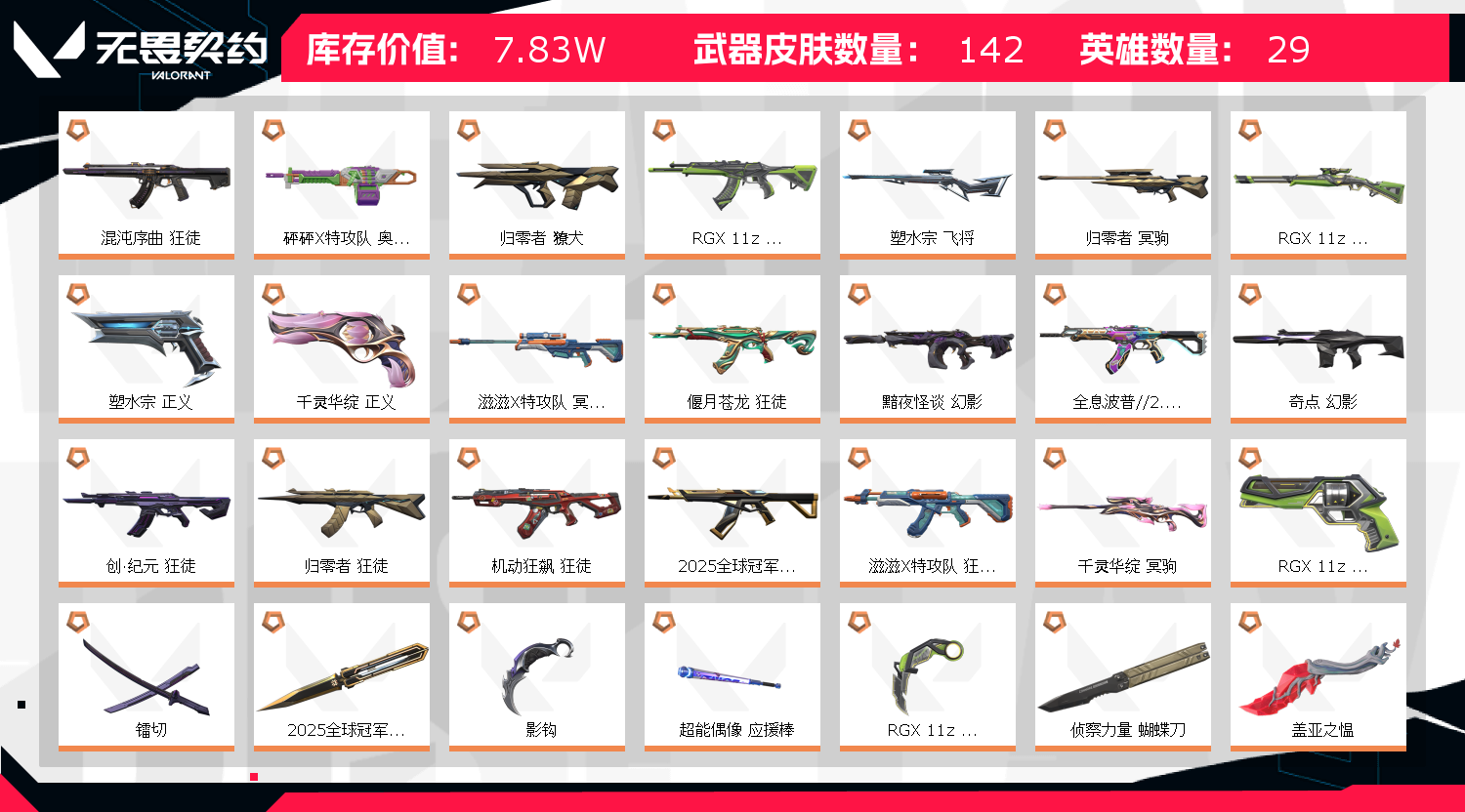 首页 > 租号大厅 > 无畏契约-wegame > wegame/wegame > 精氪毕业皮齐全特效炫彩拉满⚡25冠军套滋滋特工套RGX30套⚡显卡爪影钩侦查奇点蝴蝶嘟昂盖亚混沌猫猫