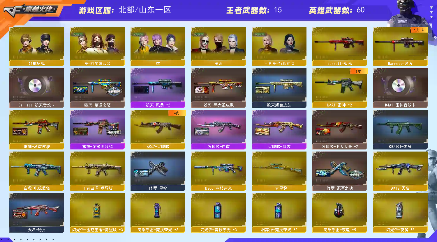 • 游戏区服:穿越火线 / 北部 / 山东一区