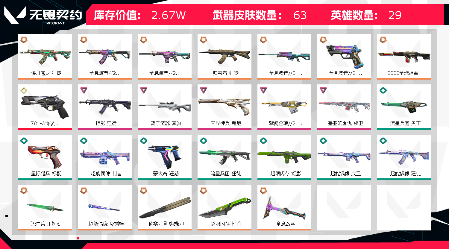 首页 > 租号大厅 > 无畏契约-wegame > wegame/wegame > ✨3w库存✨22冠军幻影✨全息2.0套✨离子大狙✨威龙狂徒✨781正义✨侦查蝴蝶刀✨