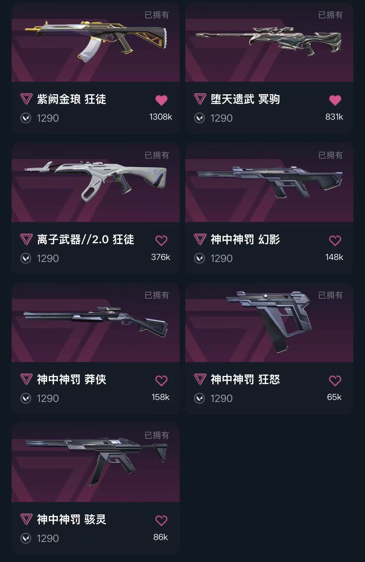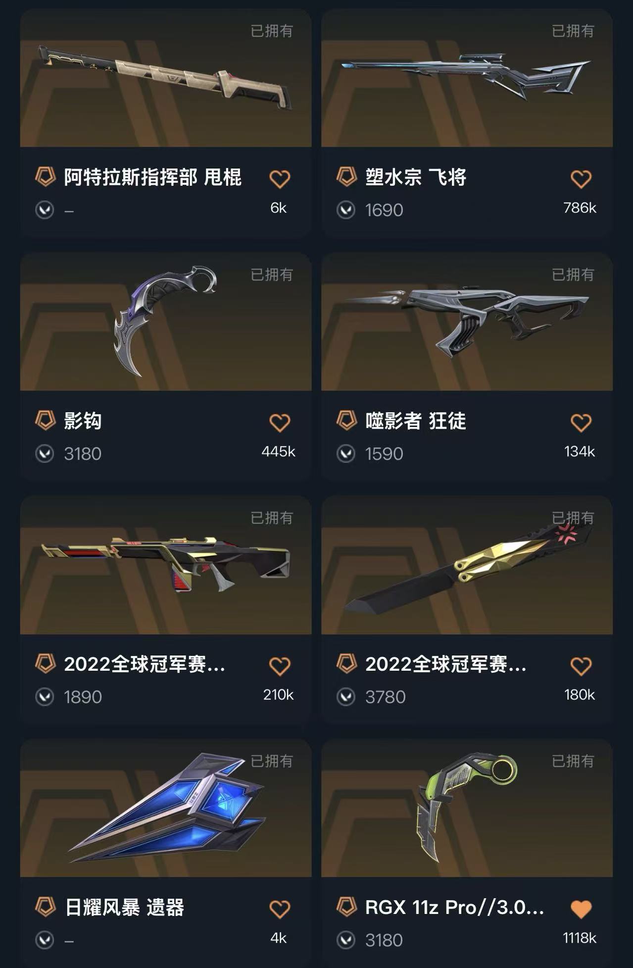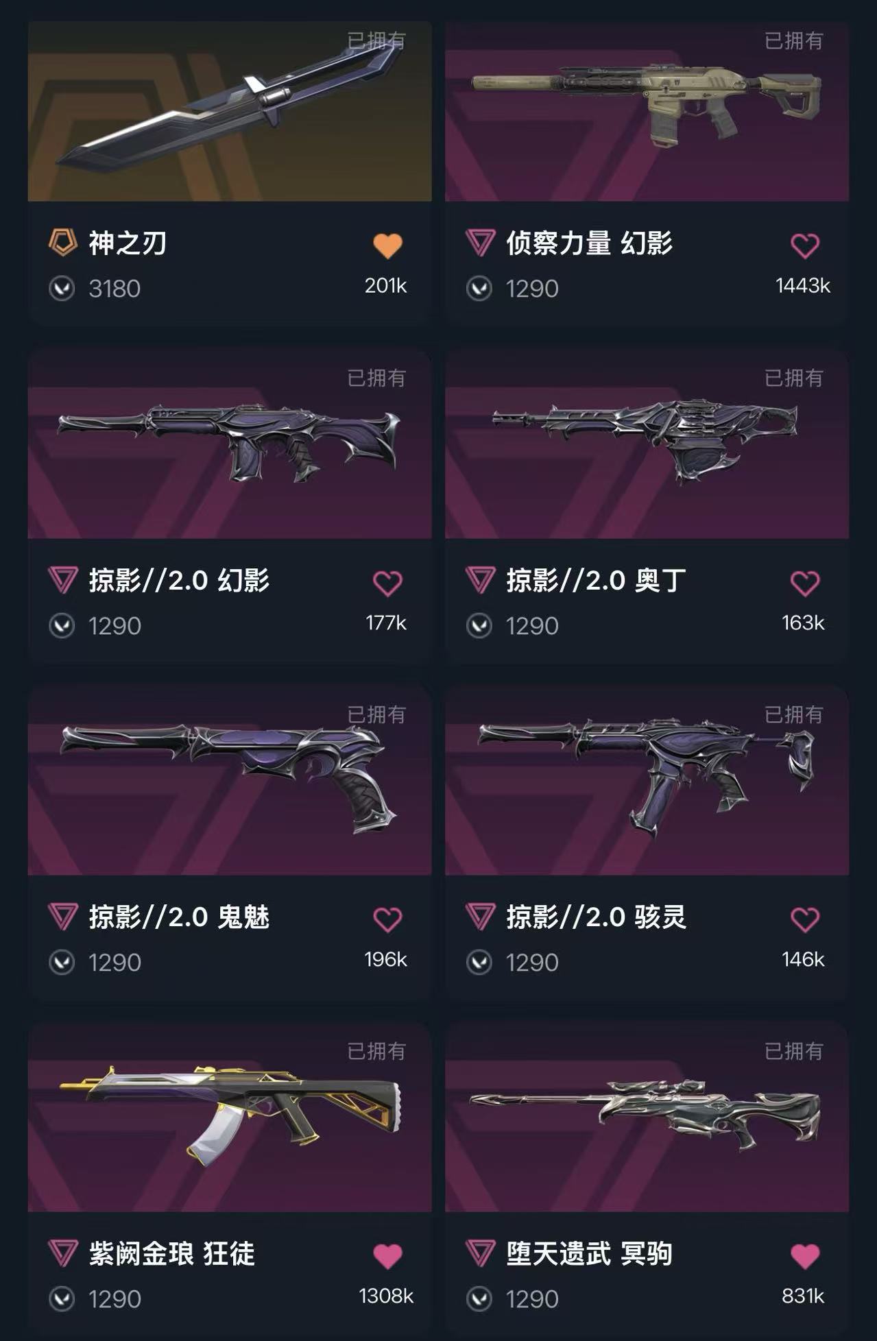 首页 > 租号大厅 > 无畏契约-wegame > wegame/wegame > 冻结秒解5万库存✨2022冠军套✨影钩✨黑波之刃✨掠影2.0套✨神中神罚套✨噬影者狂徒✨显卡爪刀✨