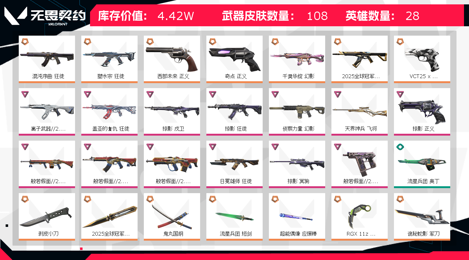 • 皮肤资产价值: 44200