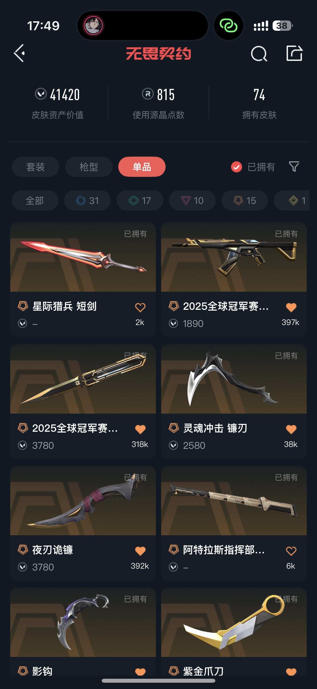 4W库存✨25冠军套装✨掠影2.0套装✨紫金爪刀✨超时空显卡盖亚紫金流脓狂徒✨千灵幻影离子正义