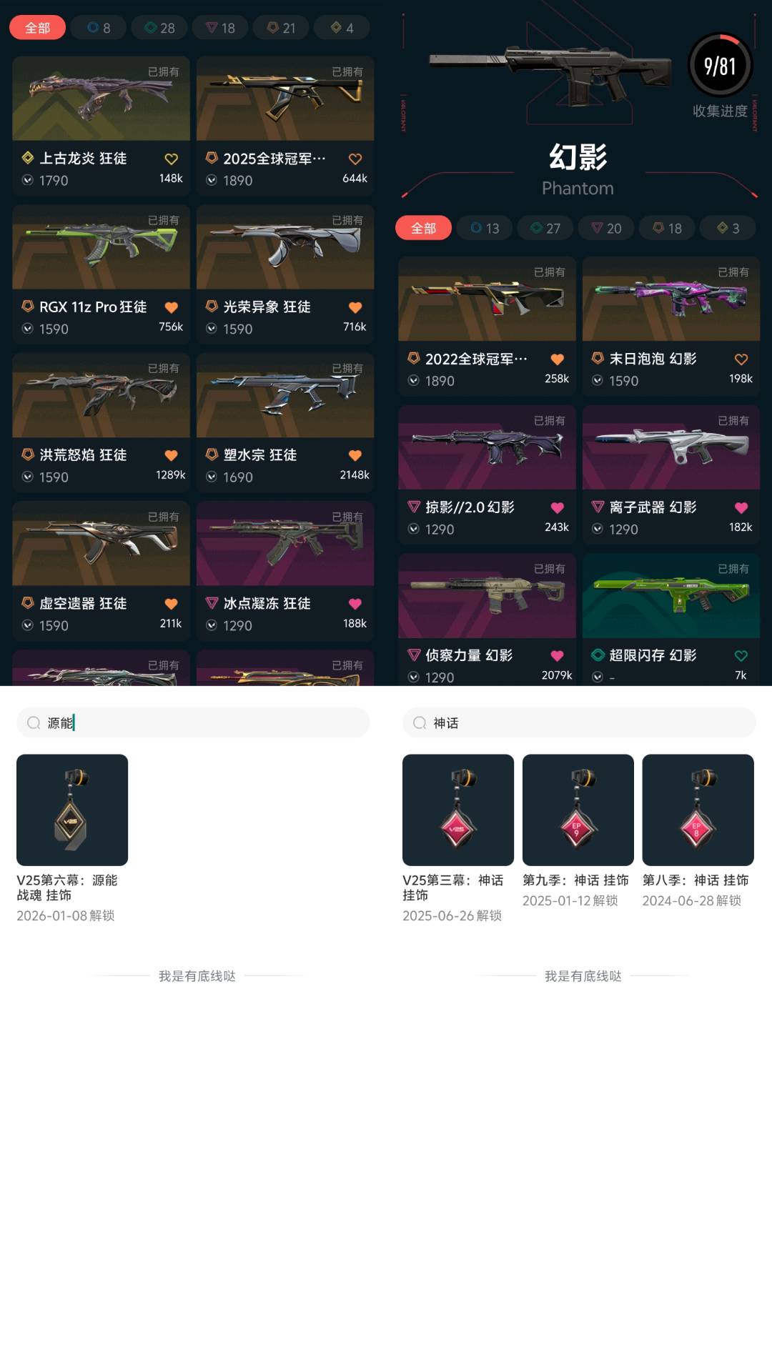 1;紫金爪刀,剥皮小刀,归零者 獠犬,盖亚的复仇 狂徒,虚空遗器 狂徒,洪荒怒焰 狂徒,侦察力量 幻影,