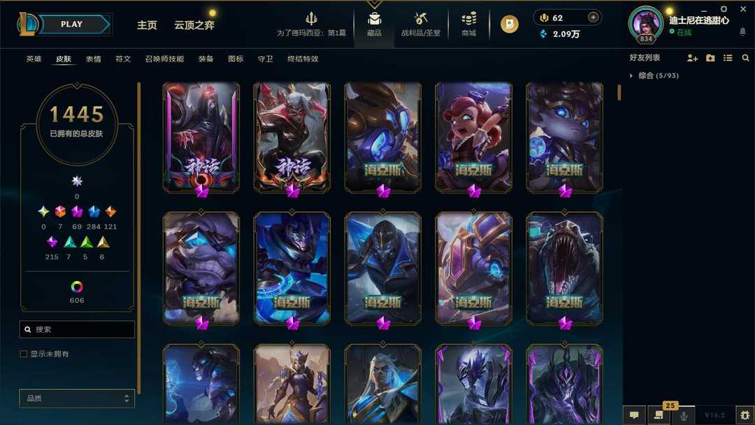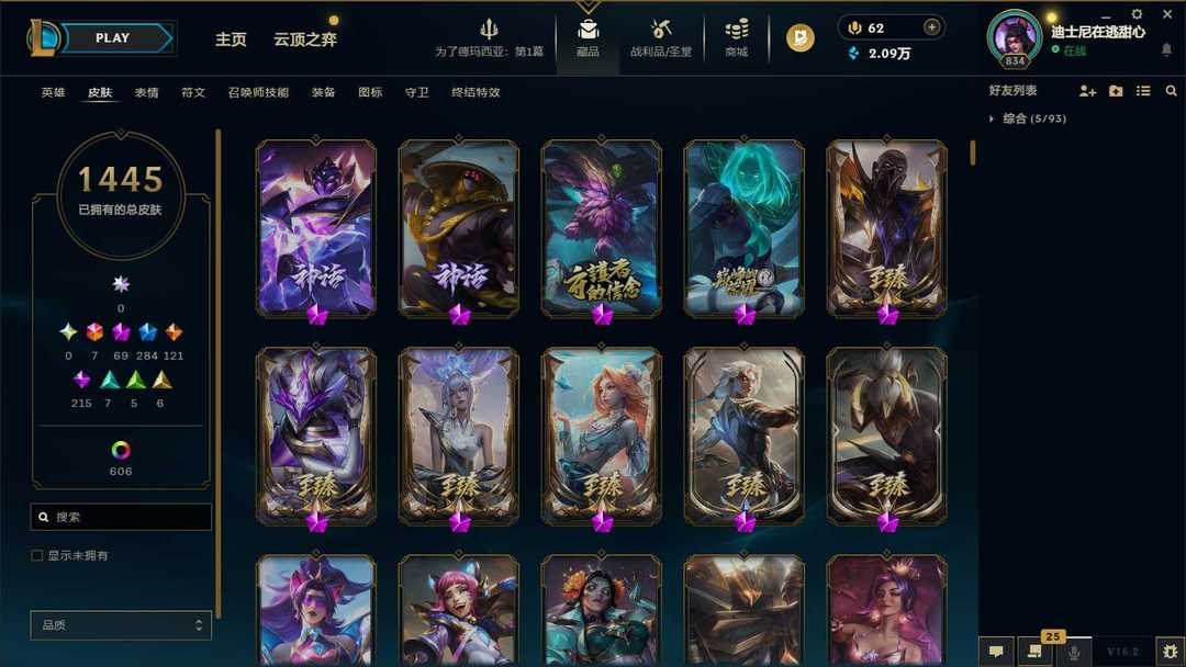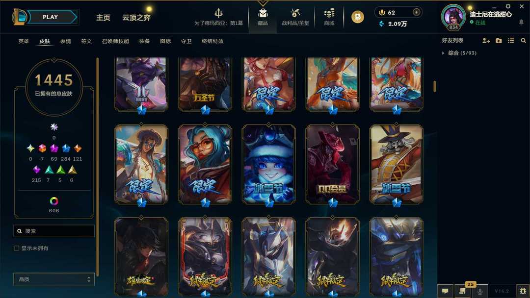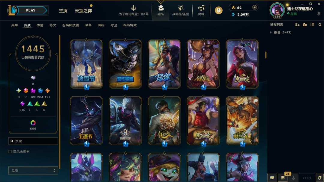 【泡泡】2050皮肤♥1445原皮♥47臻彩♥606炫彩♥69神话♥7终极♥285限定♥212传说♥