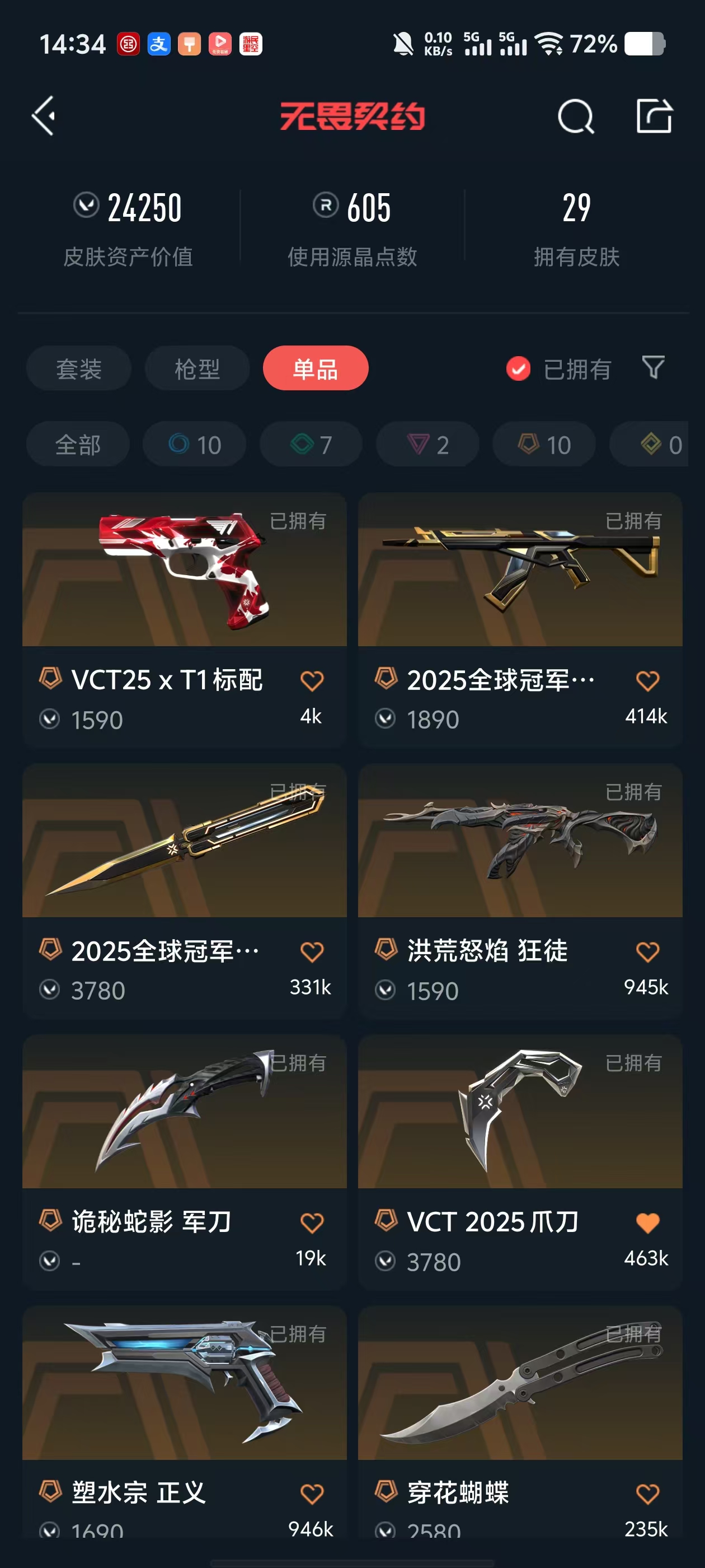 首页 > 租号大厅 > 无畏契约-wegame > wegame/wegame > 25冠军套装✨VCT2025✨落英飞旋✨黑市蝴蝶✨盖亚狂徒✨混沌狂徒✨流脓狂徒✨塑水正义