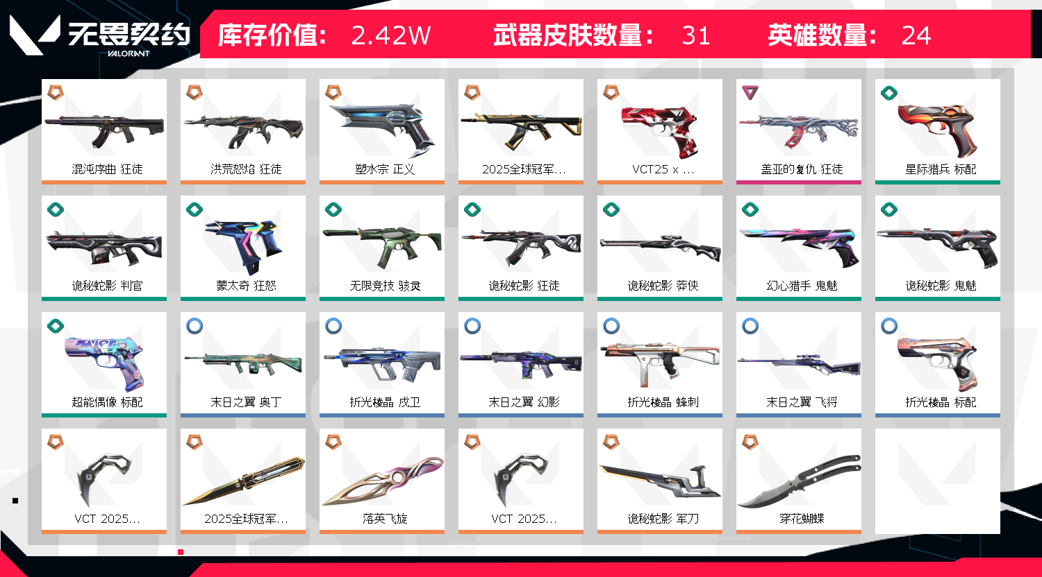 25冠军套装✨VCT2025✨落英飞旋✨黑市蝴蝶✨盖亚狂徒✨混沌狂徒✨流脓狂徒✨塑水正义