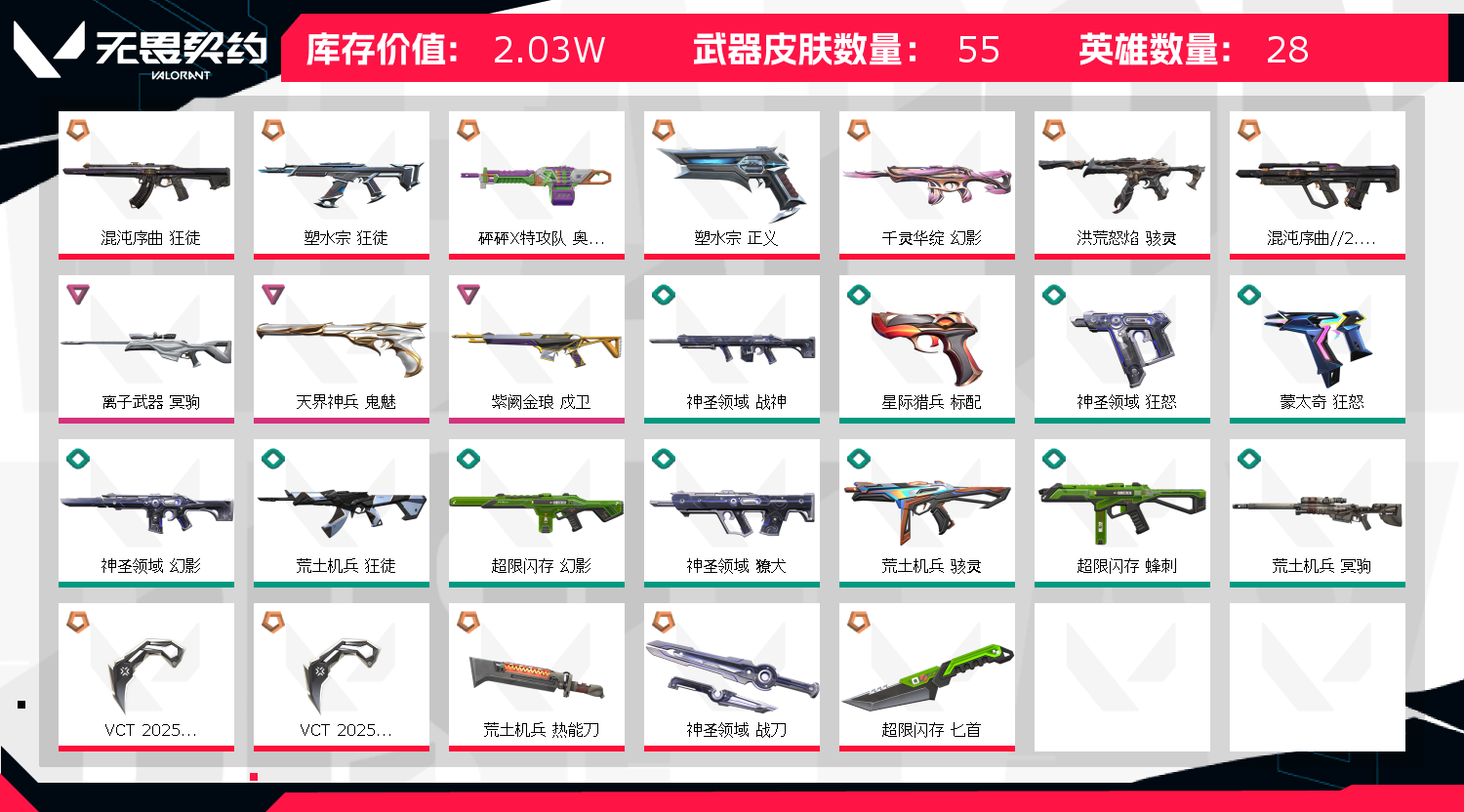 郑重声明: !!!!!因无畏契约检测严格,为防止后台插件导致封号,请务必重启电脑!!!!本人商户多年,所属账号已在派出所备案,若出现 账号封禁/毁号等情况,会马上与平台联系,平台会报警处理!请租客文明游戏,不要开挂或挂机! 1.登陆界面稍等2分钟会上去(自动登录)老板不要着急,一次不行多来几次wegame界面要耐心等2分钟 2.密令会自动输入如果一次不成功多来几次 3..进入wegame后到弹短信验证处,关闭掉,重新下载无畏契约这个游戏即可成功上号,记住。这个方法百分百上号成功!就是进入wegame重新下载无畏契约游戏 !!!百分百成功!! 4.请及时续租不要挂机,到时不下线,但是下一个会挤号导致挂机,所以请及时续租,导致禁赛的一律拉黑 5.祝老板玩的愉快,喜欢可以收藏关注 ! 开挂必追究,不拿到赔偿不罢休! 如果上号正在游戏中,是上个租客到时不下线导致的,不是号主在玩,请帮忙打完这局, 谢谢了,为了防止顶号,请您及时续租获得更好的游戏体验❤️;砰砰X特攻队 奥丁,VCT 2025 爪刀,混沌序曲 狂徒,塑水宗 狂徒,离子武器 冥驹,天界神兵 鬼魅,塑水宗 正义,