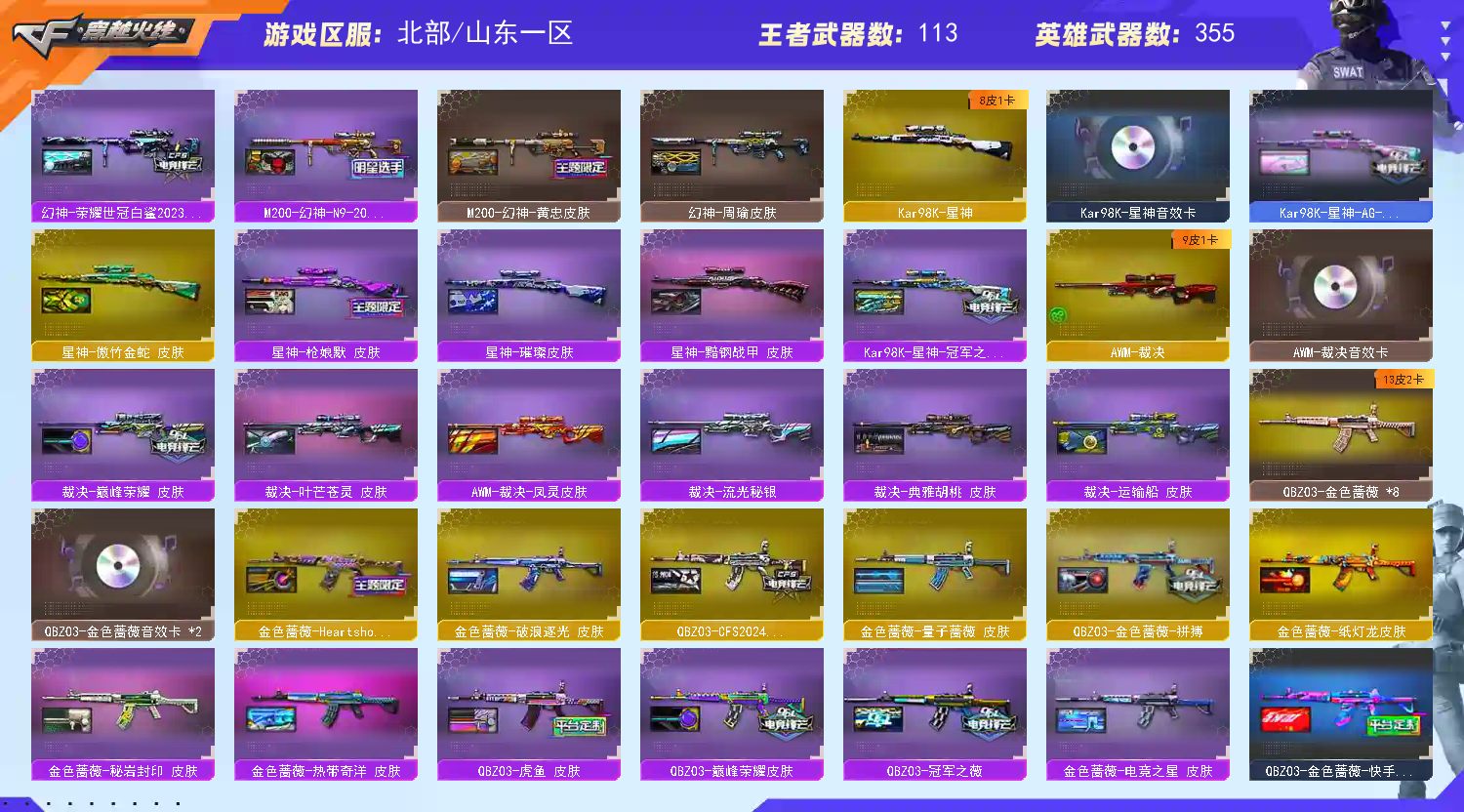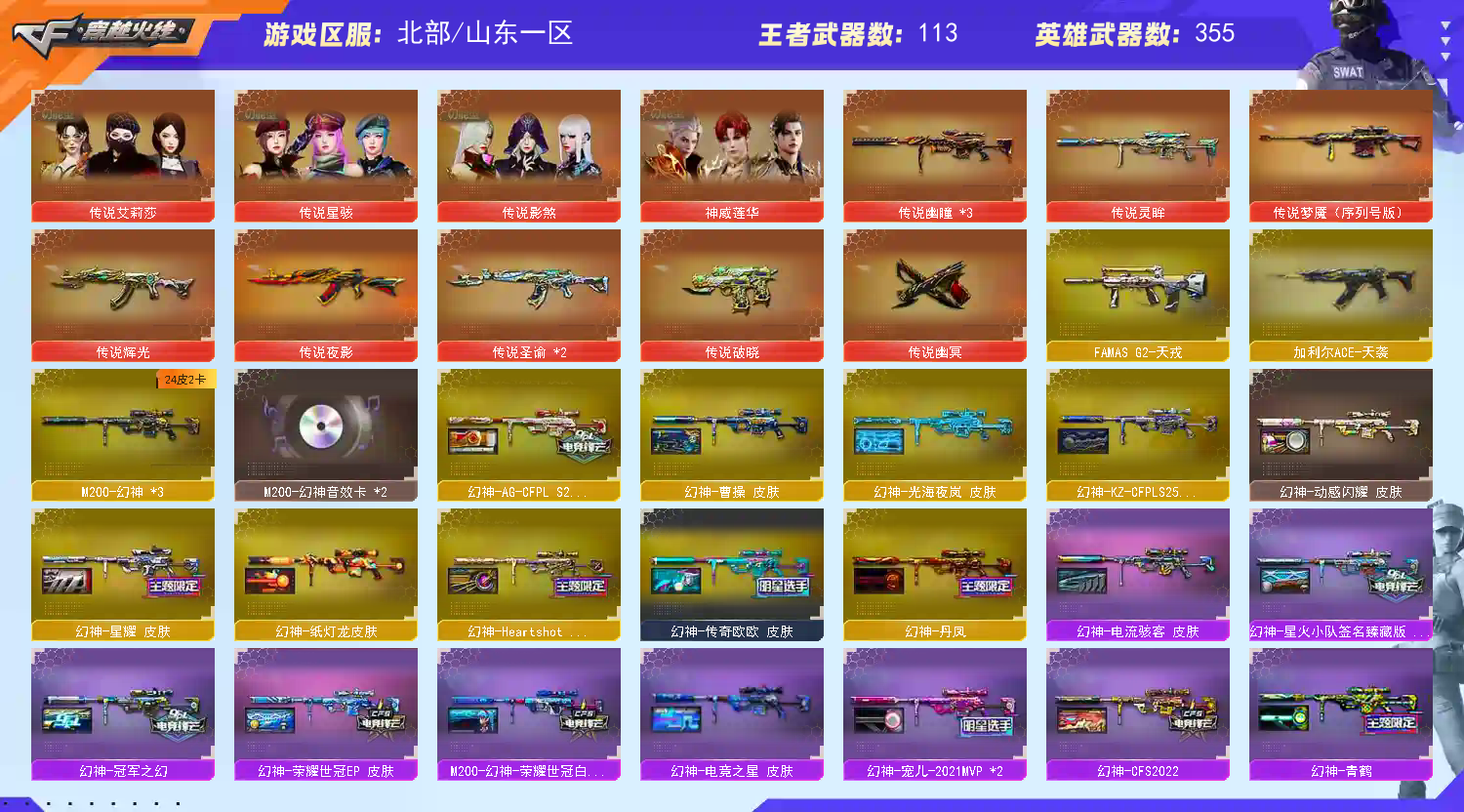 首页 > 租号大厅 > 穿越火线 > 网通区/山东一区 > 幻神光海夜阑✨神威莲华白虎常旭✨两柯尔特百战金芒✨雪域霜狐/幻兽套/15传说/幻神KZ EP电竞之星