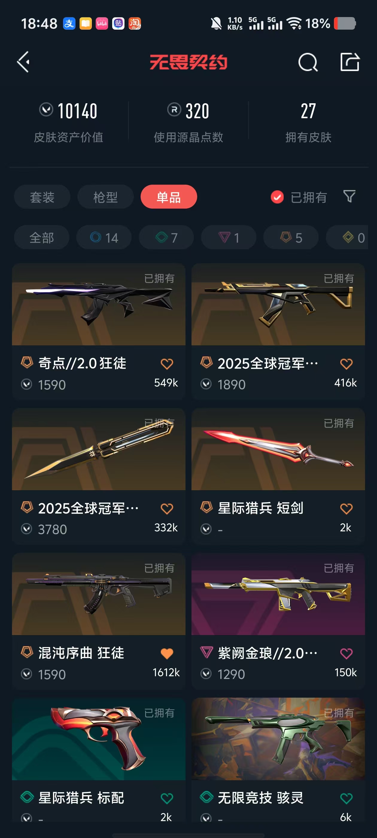 • 皮肤资产价值: 10140