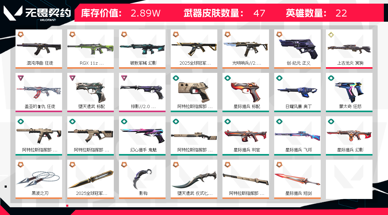 • 皮肤资产价值: 28920