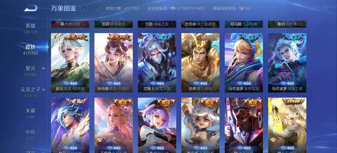 顶级贵族V10♥675皮♥17荣耀水晶6星传说♥狐仙小兵皮肤♥5星传说♥各种传说限定皮肤🥬包天特惠中♥134区时之愿境♥不是云♥看图找我