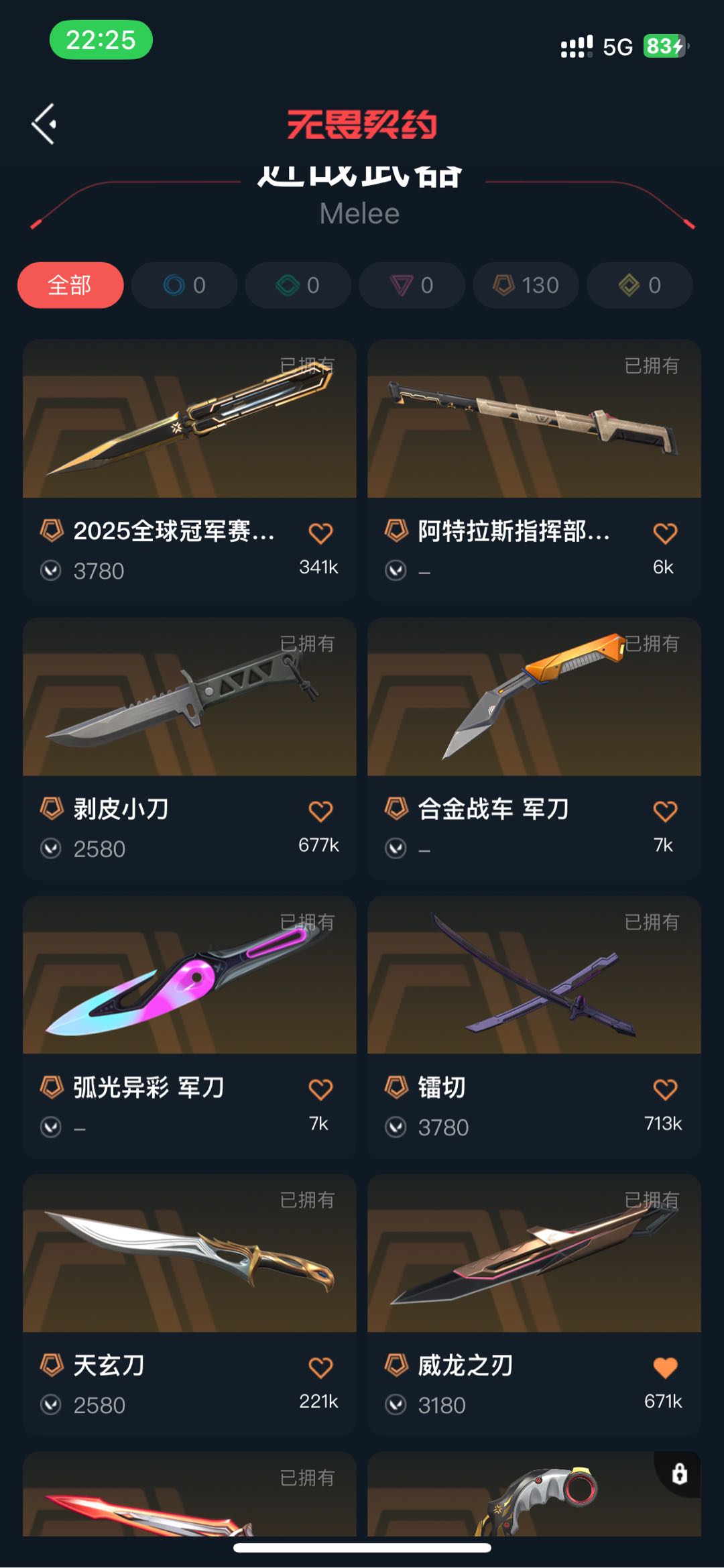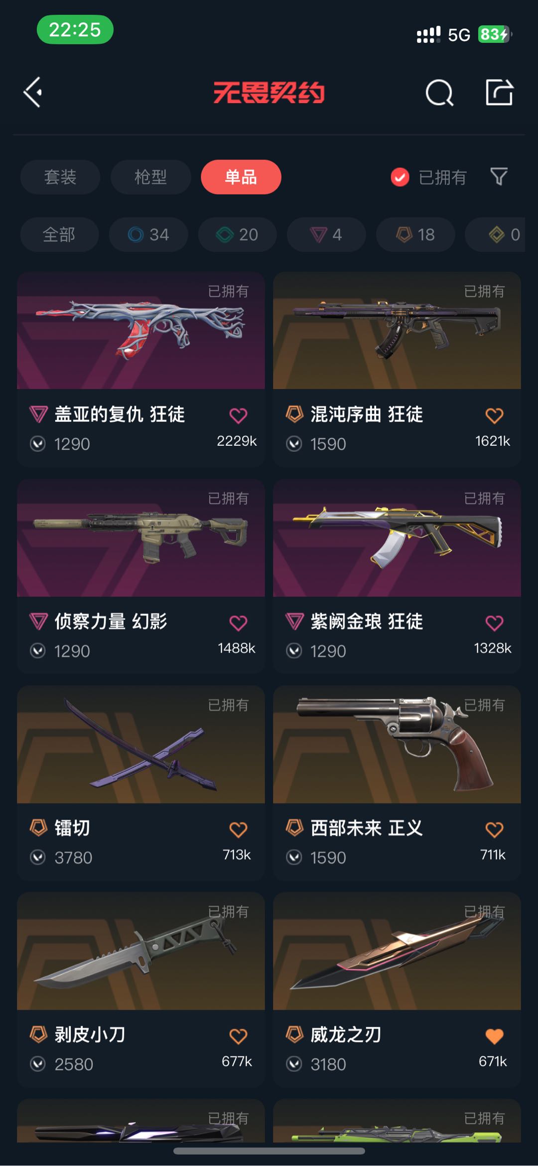 无;剥皮小刀,镭切,威龙之刃,盖亚的复仇 狂徒,侦察力量 幻影,紫阙金琅 狂徒,RGX 11z Pro 狂徒,