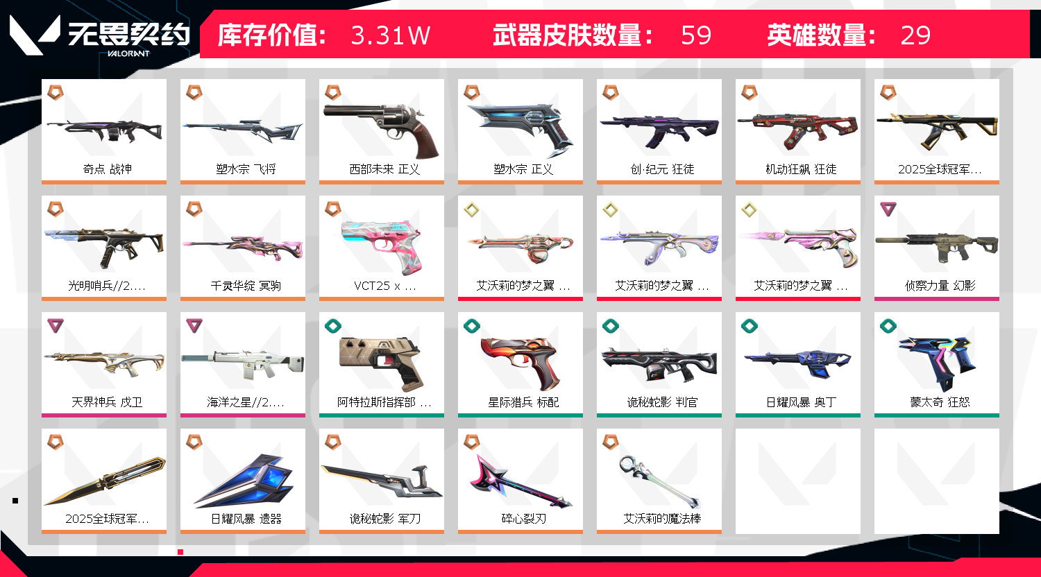 • 皮肤资产价值: 33100