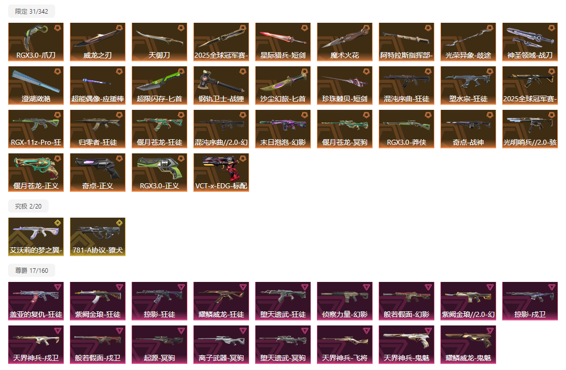 精氪毕业皮齐全特效炫彩拉满⚡RGX威龙魔术火花⚡25冠军套混沌盖亚猫猫紫金狂徒⚡侦查混沌末日泡泡幻影