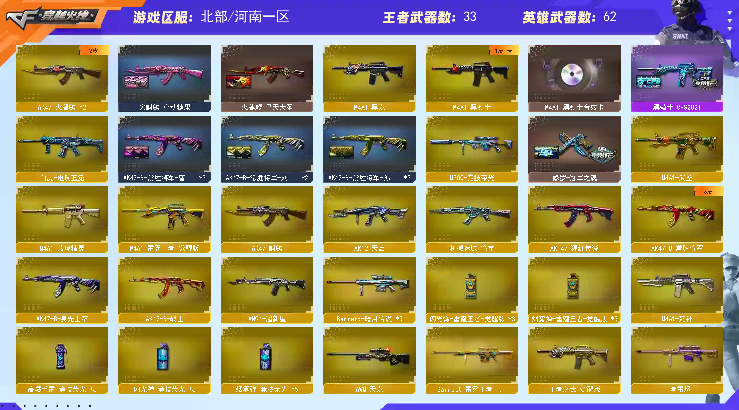• 游戏区服:穿越火线 / 网通区 / 河南一区